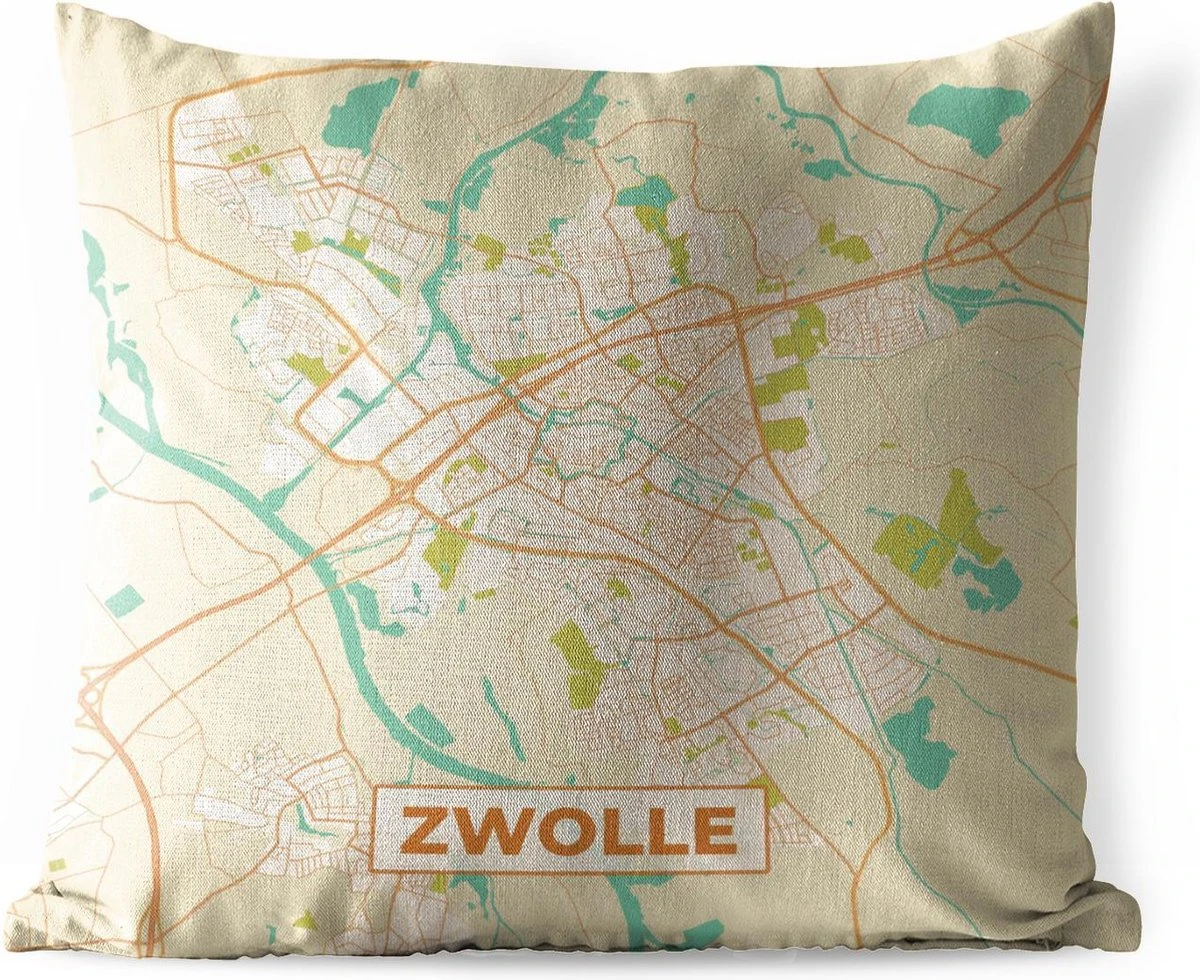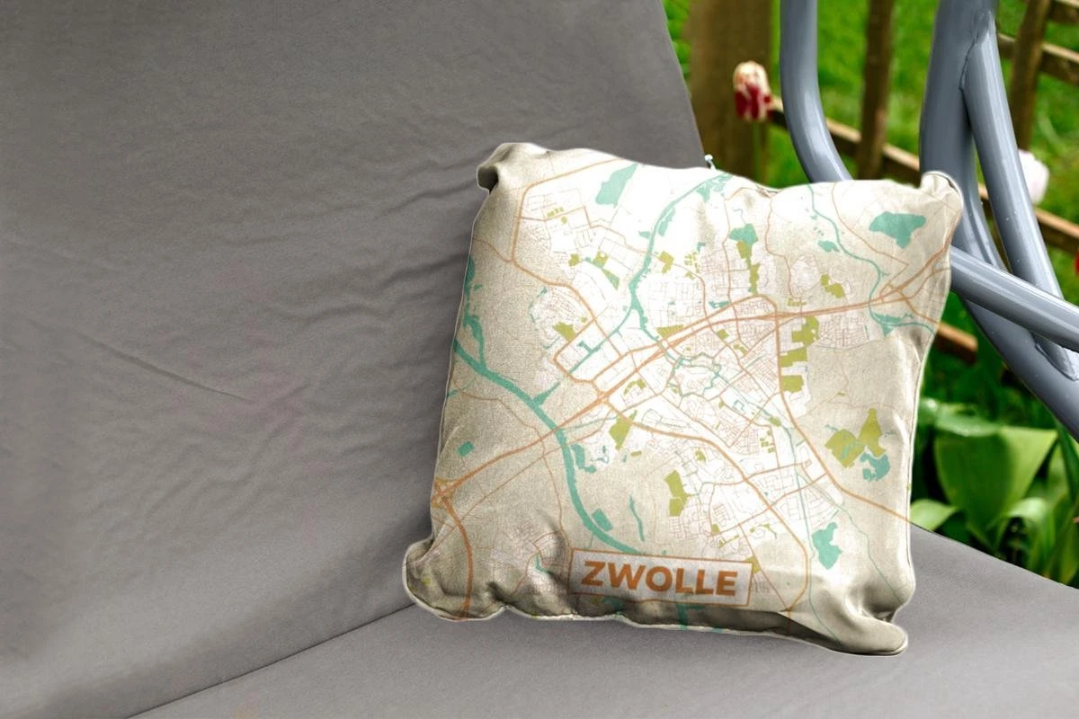 Deze kaart van Zwolle is in een vintage stijl weergegeven en geeft de stad van bovenaf weer.