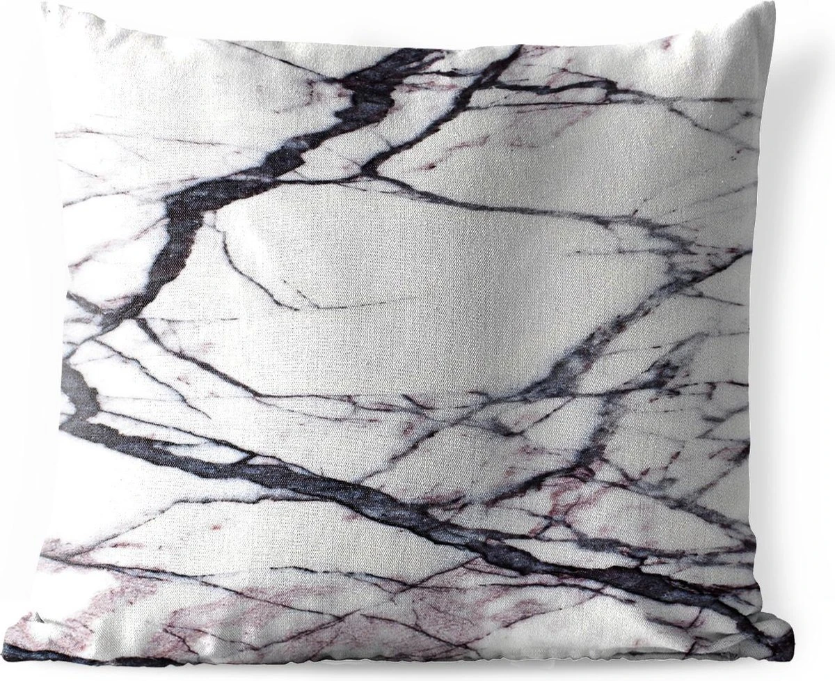 Het wit gekleurde marmer is versierd met een netwerk van dikke en dunne zwarte aderen.