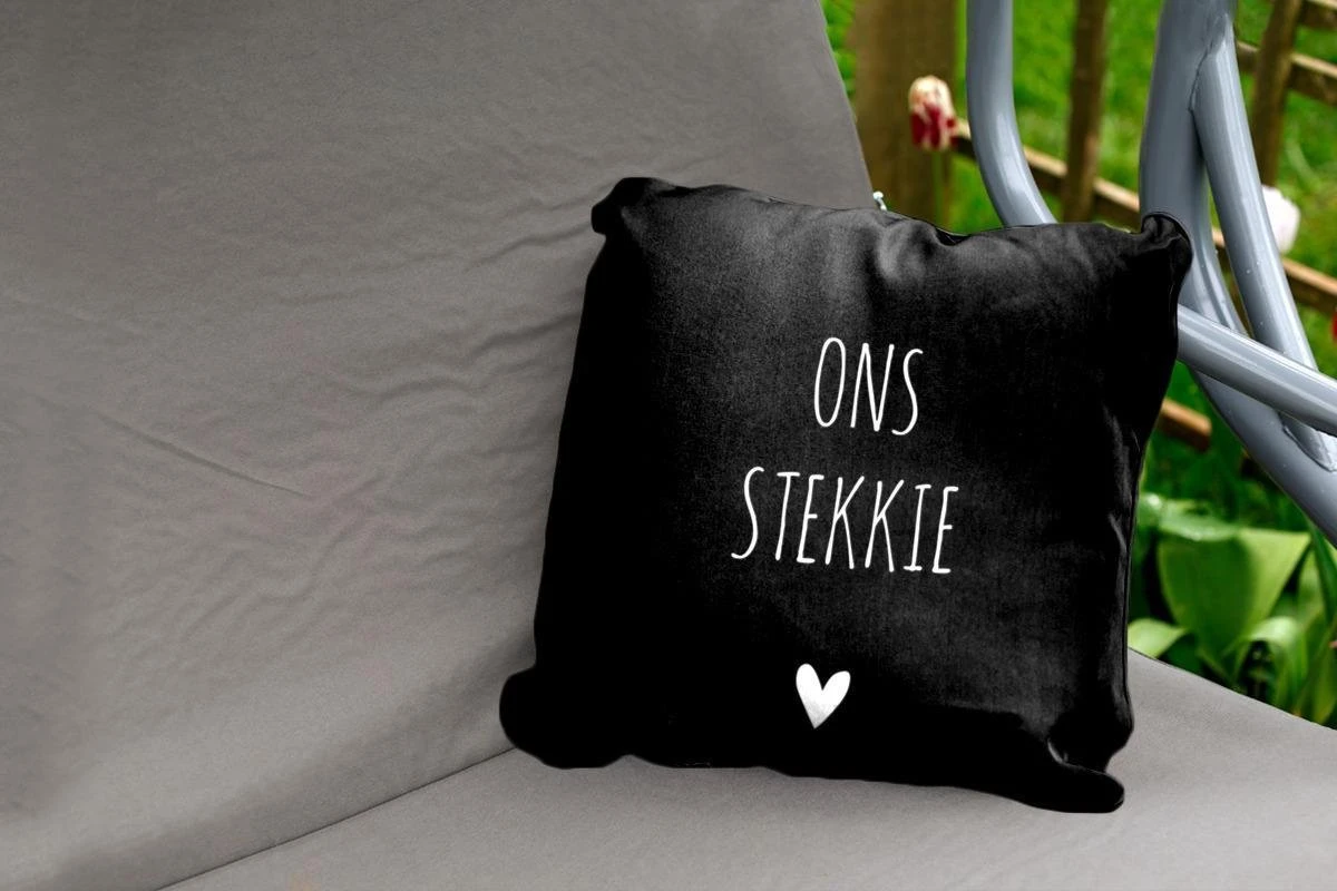 Nederlandse quote ”Ons stekkie” met een hart op een zwarte achtergrond.