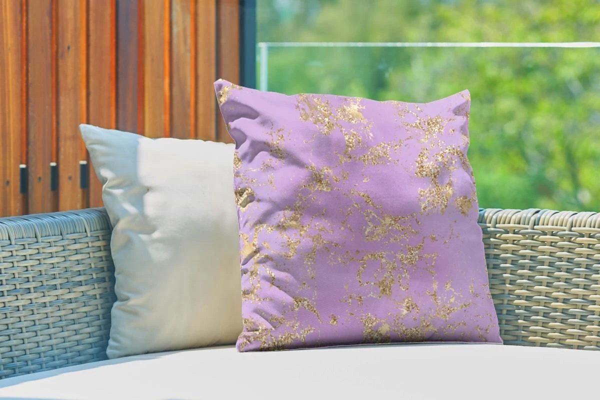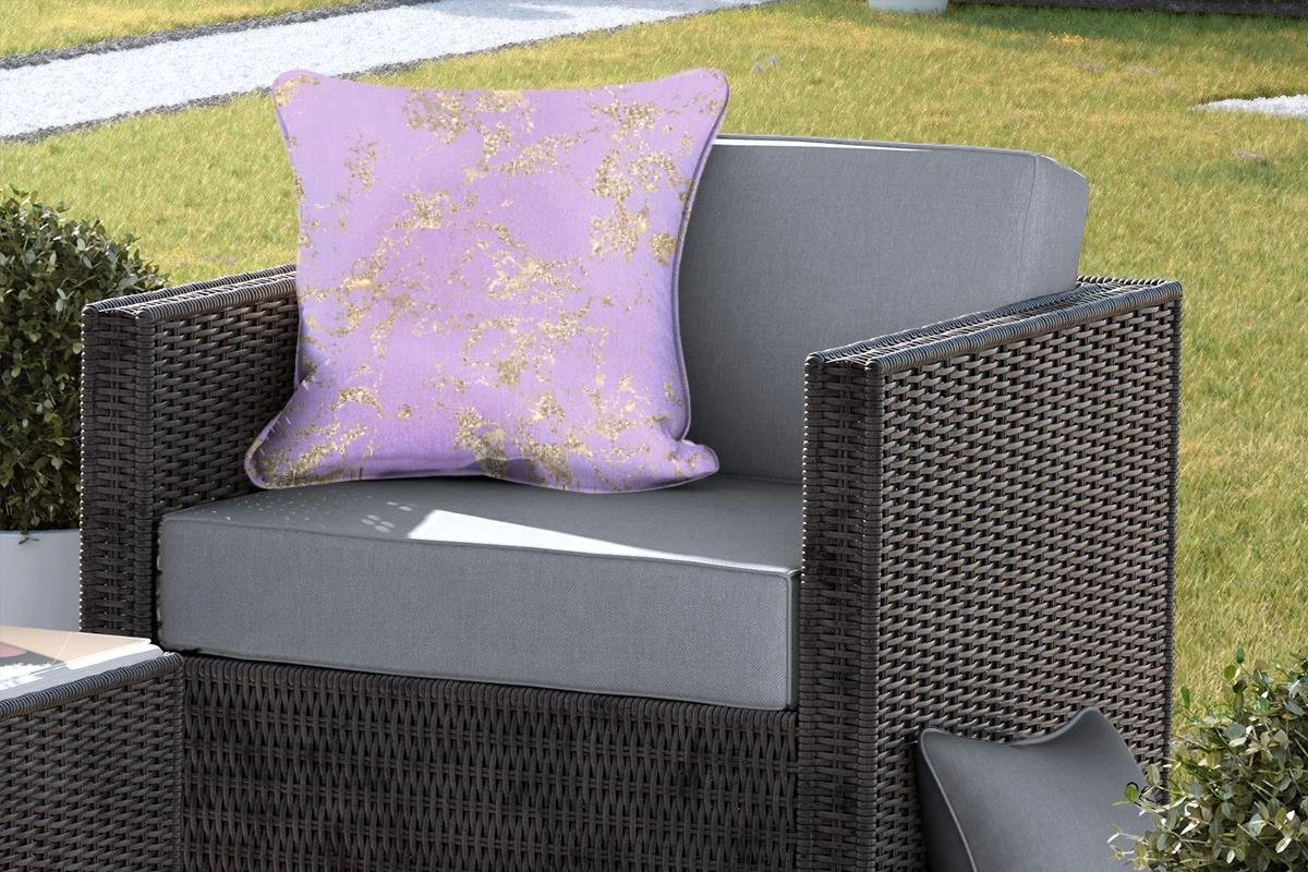 Paarse marmer met een abstract gouden patroon.