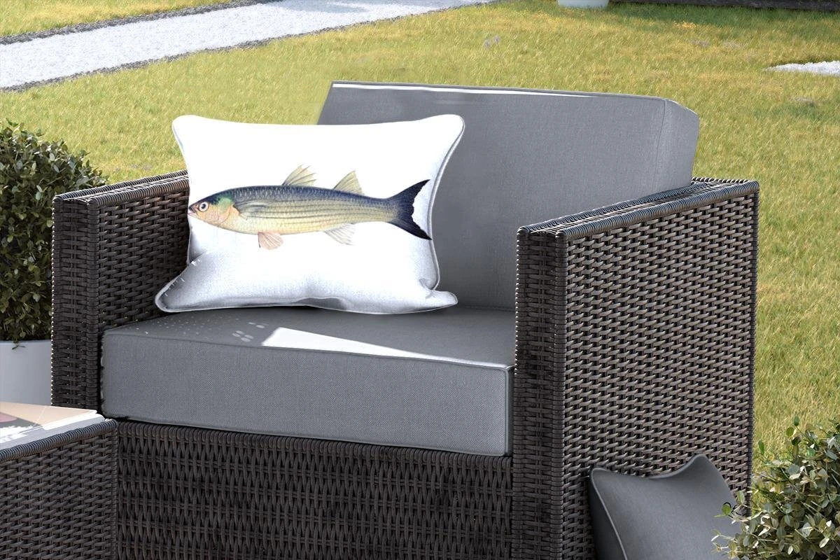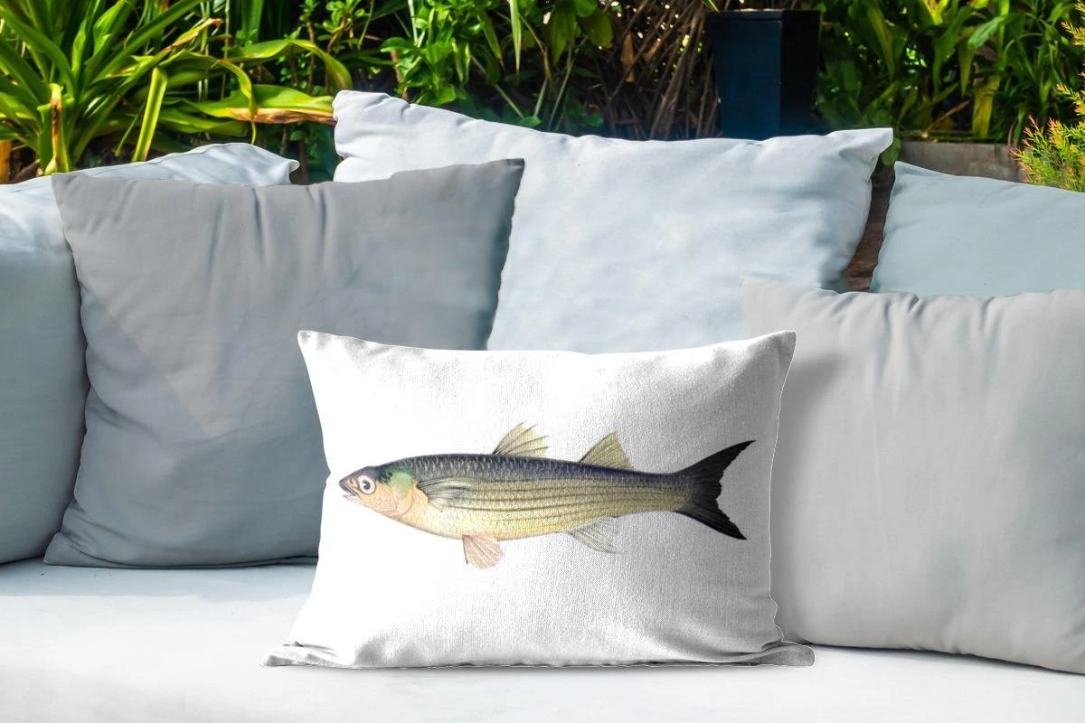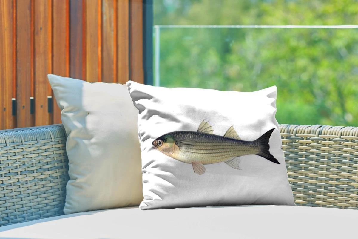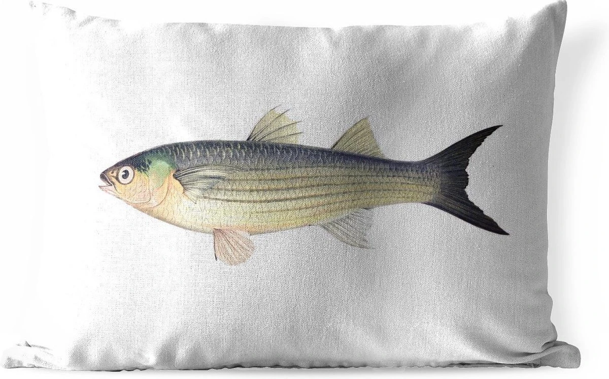 Een gedetailleerde illustratie van een goudharder die door zijn goud met zilveren kleur goed opvalt tegen de witte achtergrond. De vis hoort bij de familie van harders en komt voor in de Atlantische Oceaan en de Middellandse Zee. Deze tekening is geschikt voor de woonkamer of de studeerkamer.