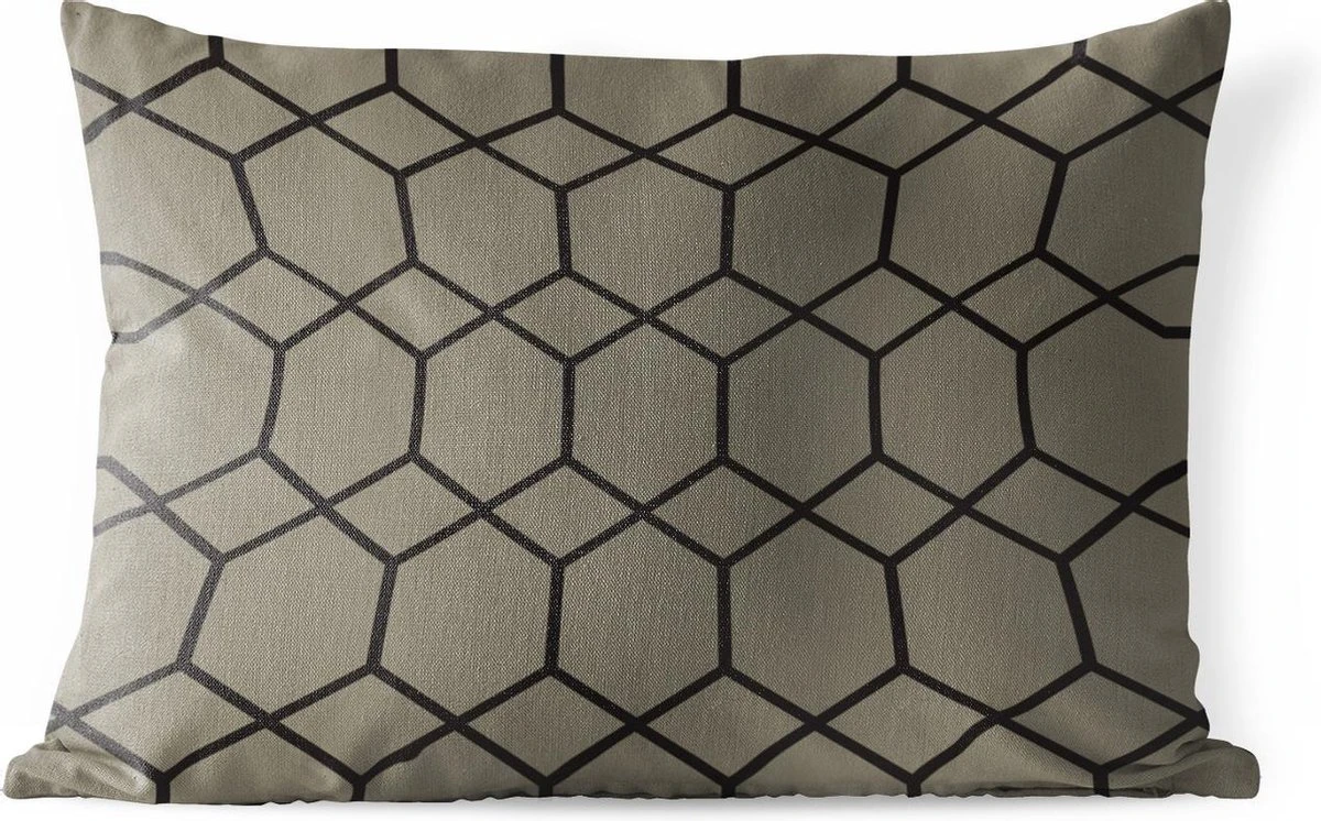 Op de bruine achtergrond staat een bijzonder, luxe patroon afgebeeld. Het patroon bestaat uit zwarte lijnen die samen ruiten en zeshoeken vormen. Geef het interieur van je huis een boost met deze afbeelding.