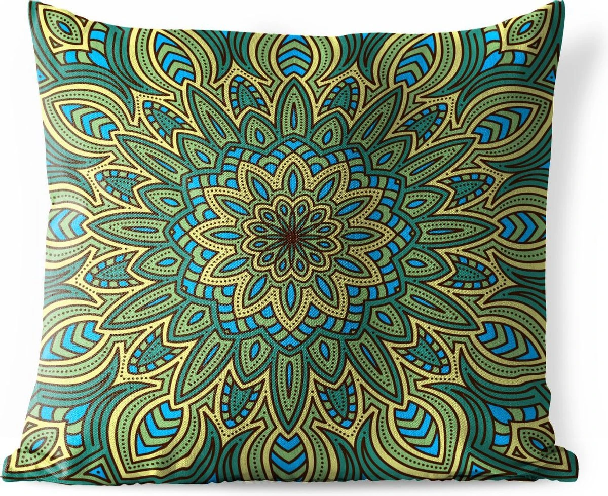 Een abstracte weergave van een mandala met subtiele bloemdetails. De vele kleuren brengen het geheel tot een levendig beeld.