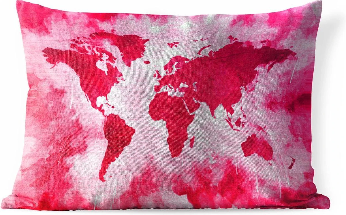 Verrijk het interieur van de woonkamer met deze weergave van een wereldkaart met felle roze verf. De achtergrond heeft een structuurpatroon.
