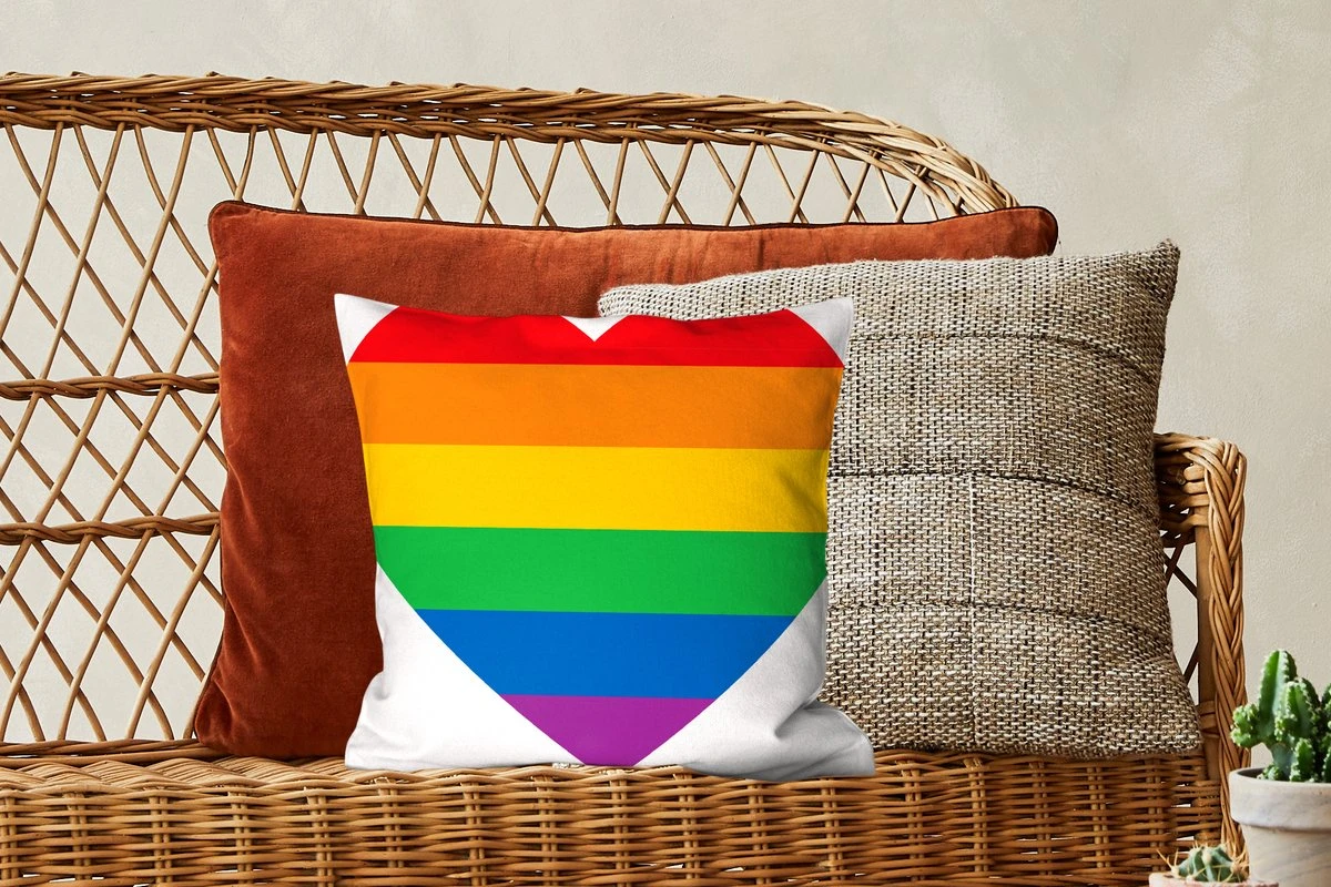 Een fascinerende illustratie van een hart met alle kleuren van de regenboog. Het kleurrijke hart is te zien op een witte achtergrond.