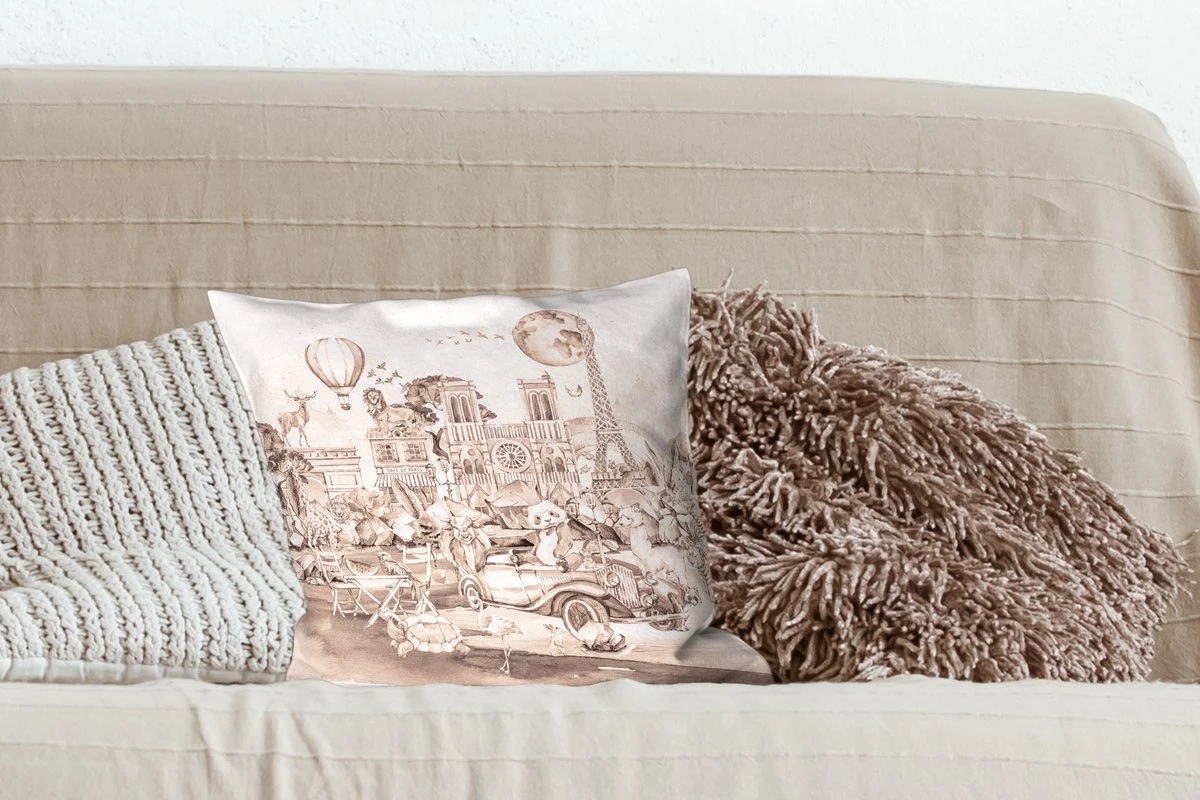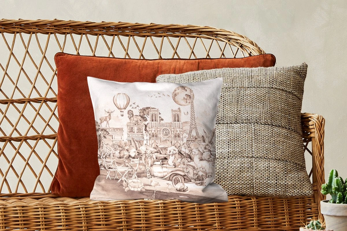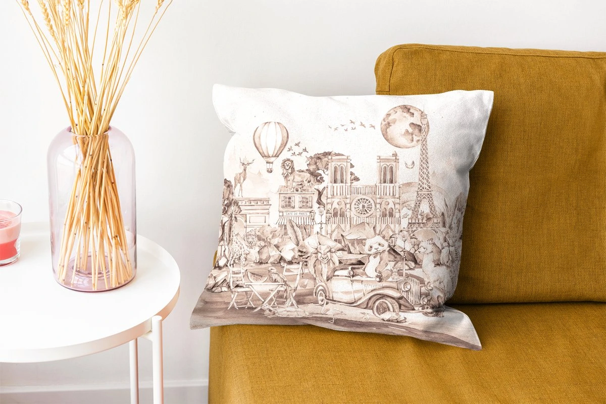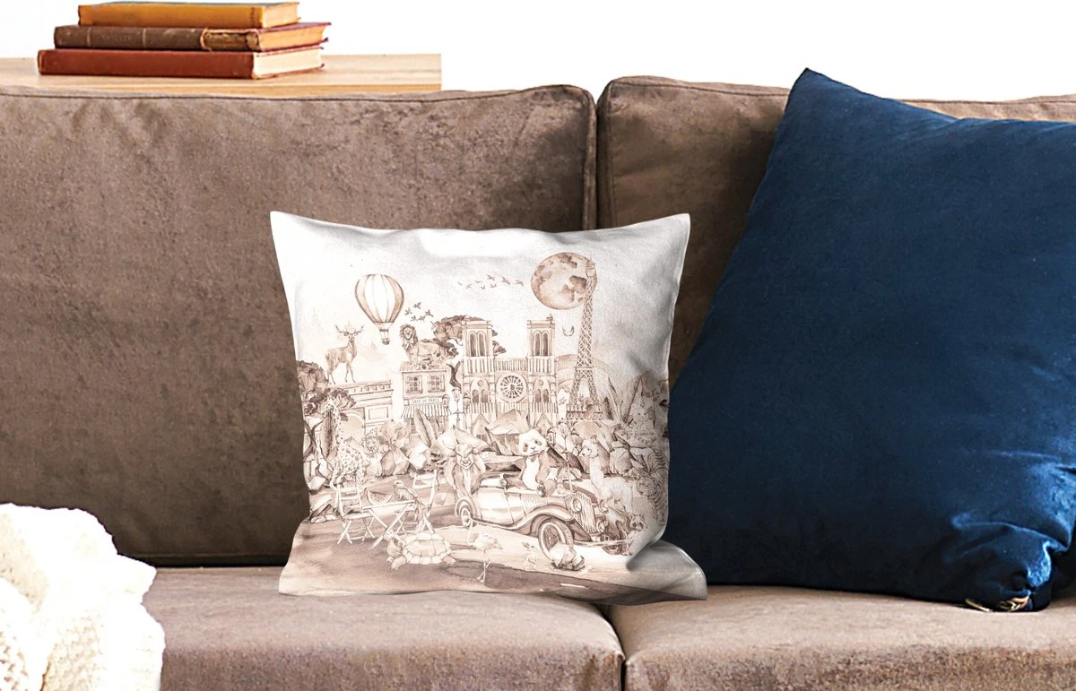 Kussensloop – Kinderen – Parijs – Panda – Dieren – Luchtballon – Slaapkamer – Woonkamer