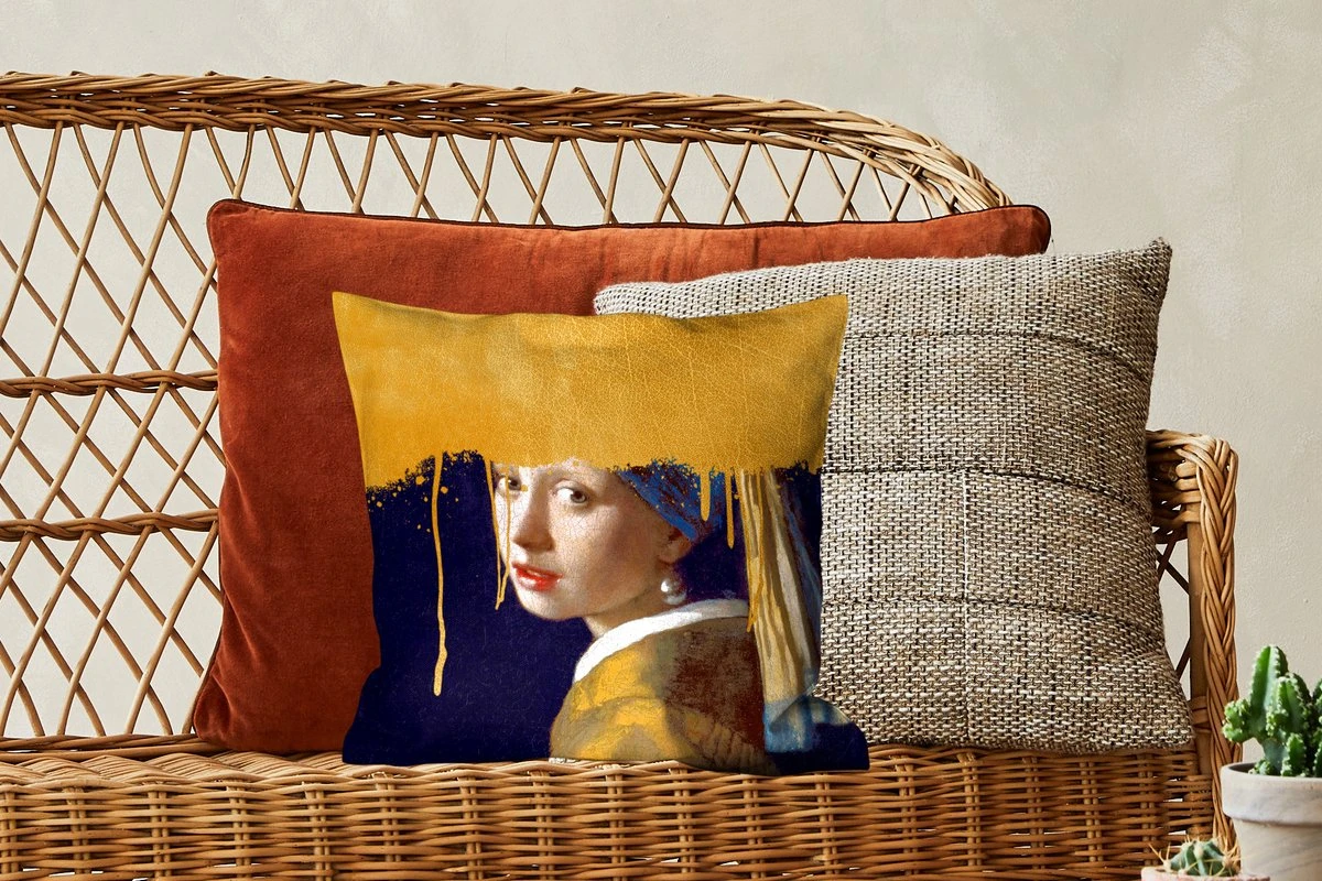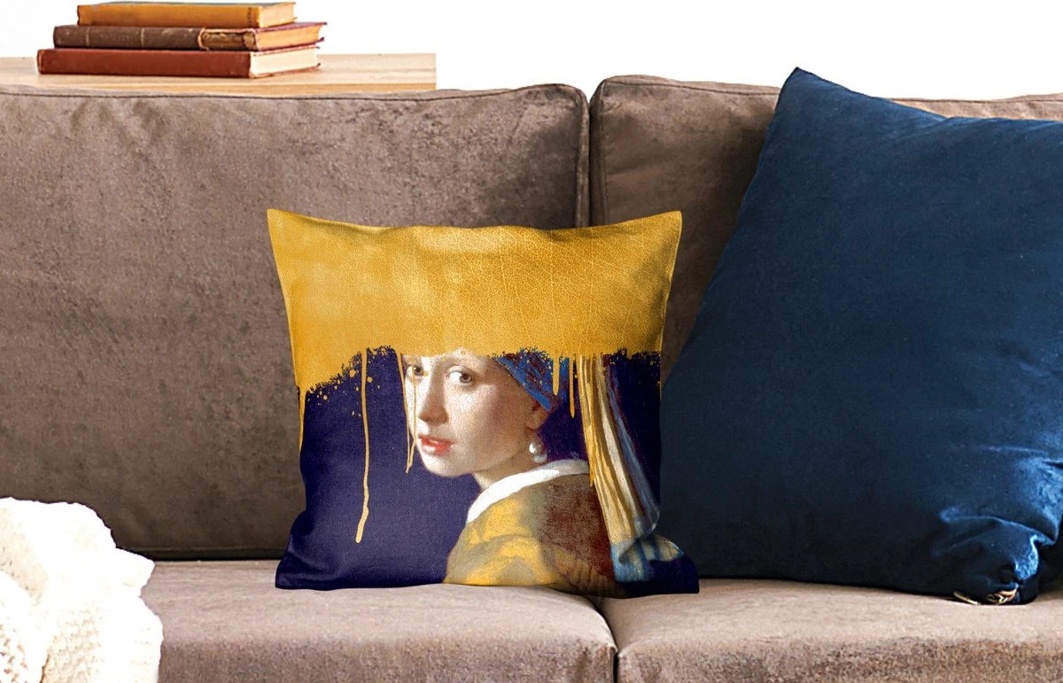 Meisje met de parel onder een laag gouden verf.