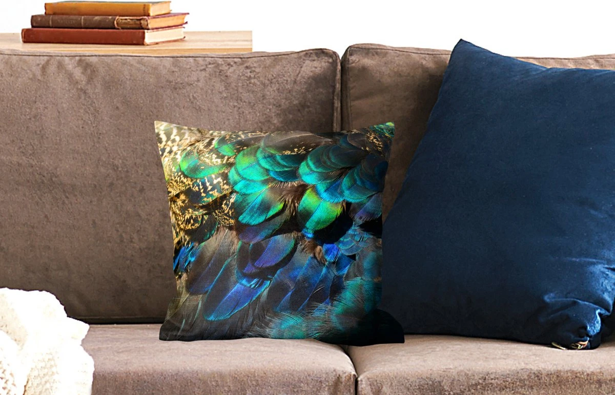 Kussensloop – Veren – Pauwveren – Pauw – Blauw – Kunst – Slaapkamer – Woonkamer