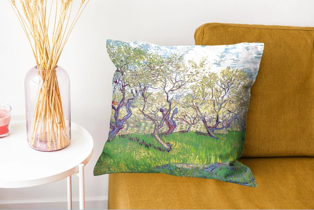 Kussensloop – Boomgaard met bloeiende pruimenbomen – Schilderij van Vincent van Gogh – Slaapkamer – Woonkamer