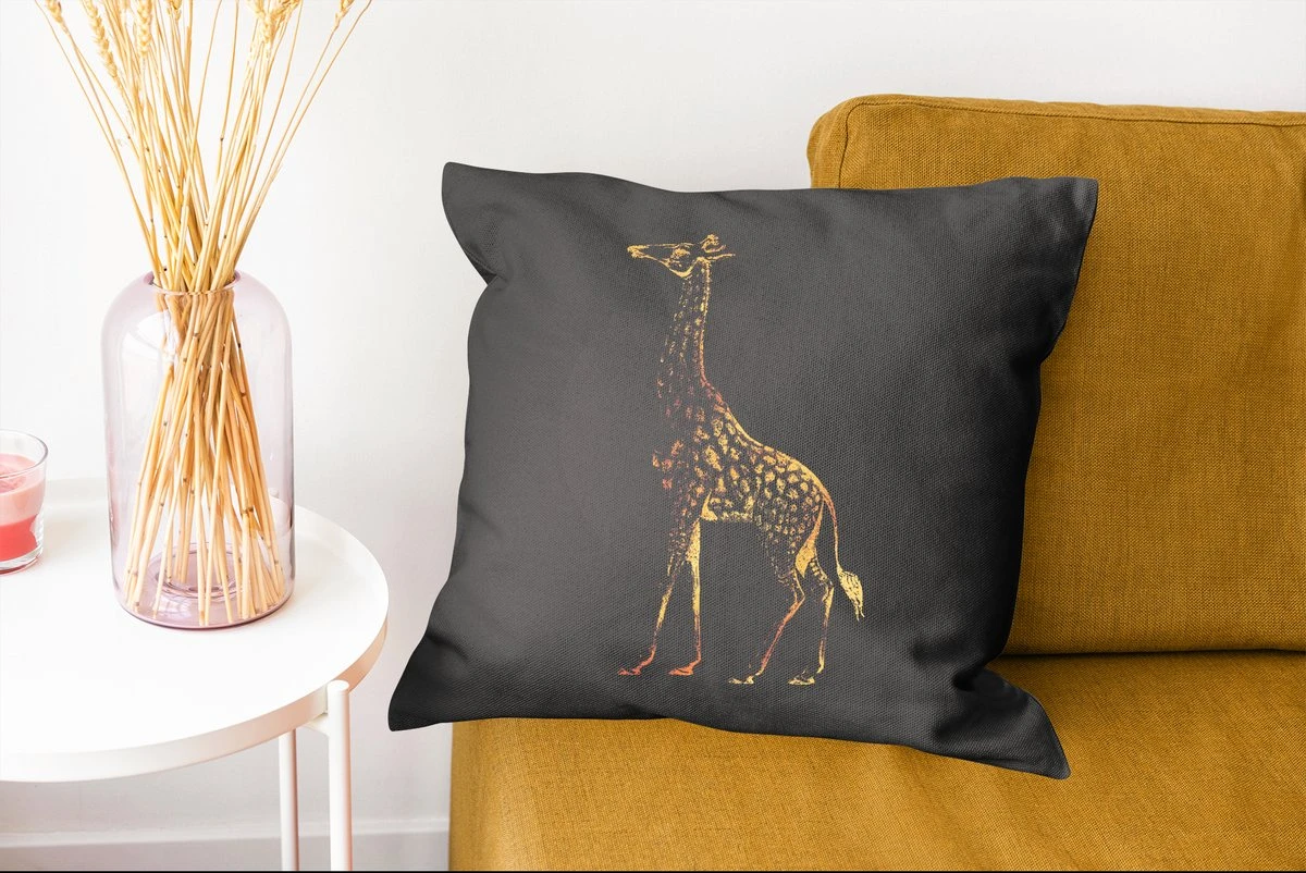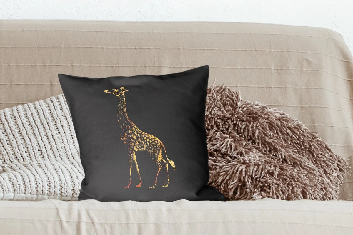 Gouden vintage giraf op een zwarte achtergrond.
