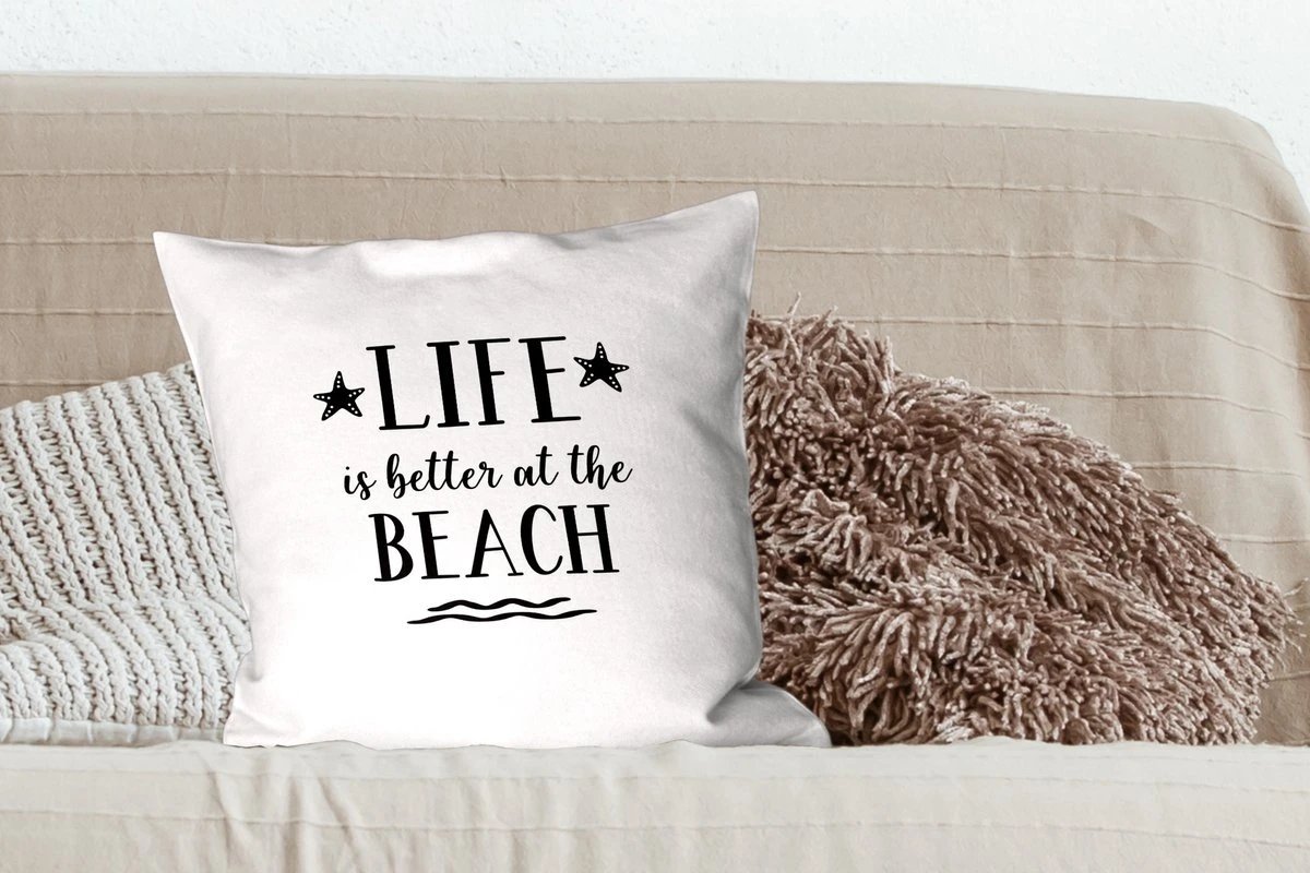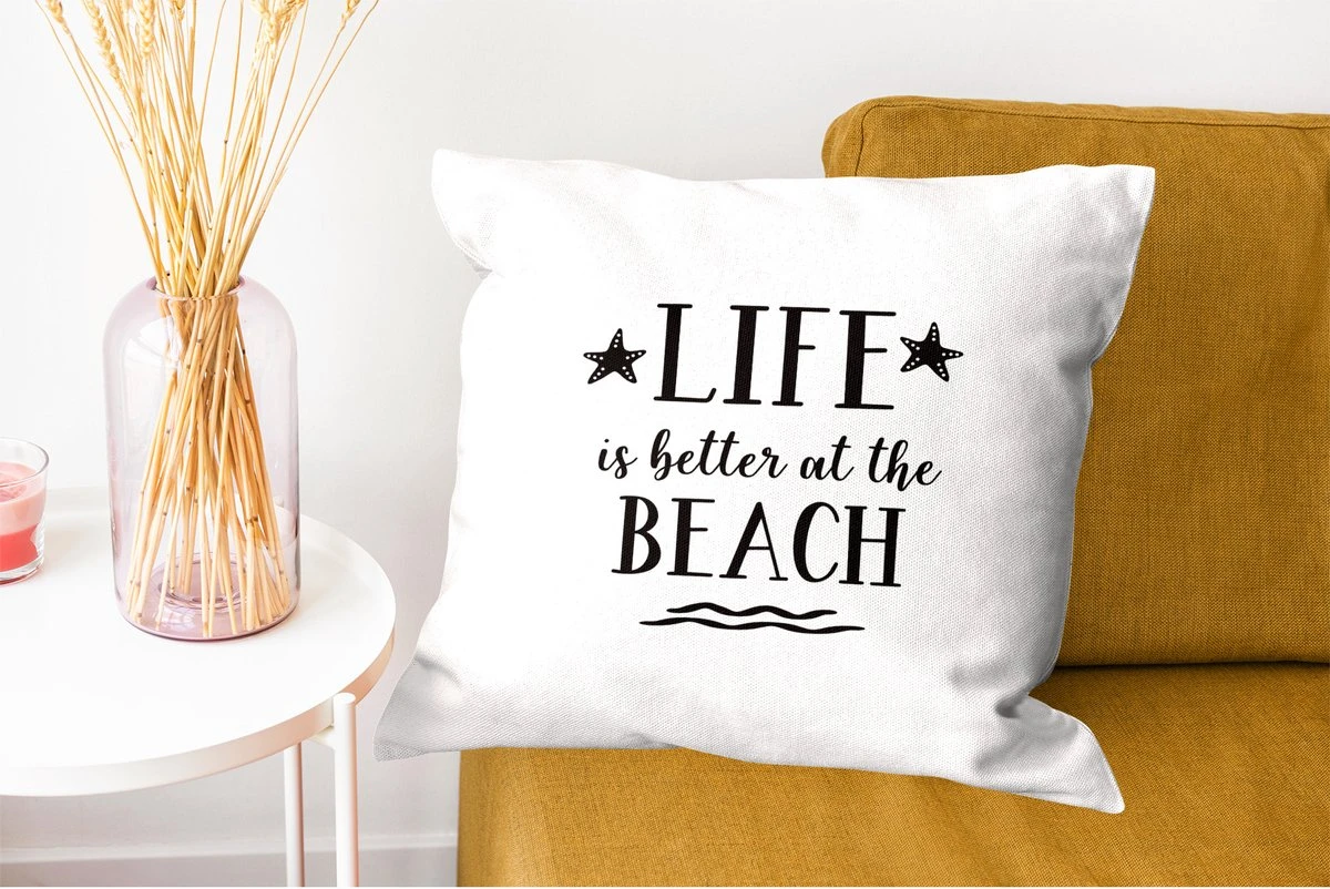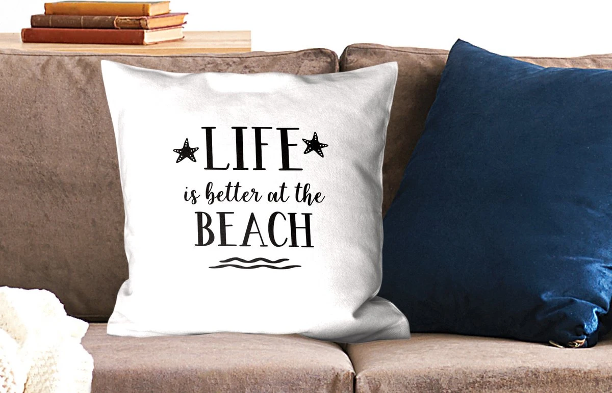 Kussensloop – Spreuken – Quotes – Life is better at the beach – Slaapkamer – Woonkamer