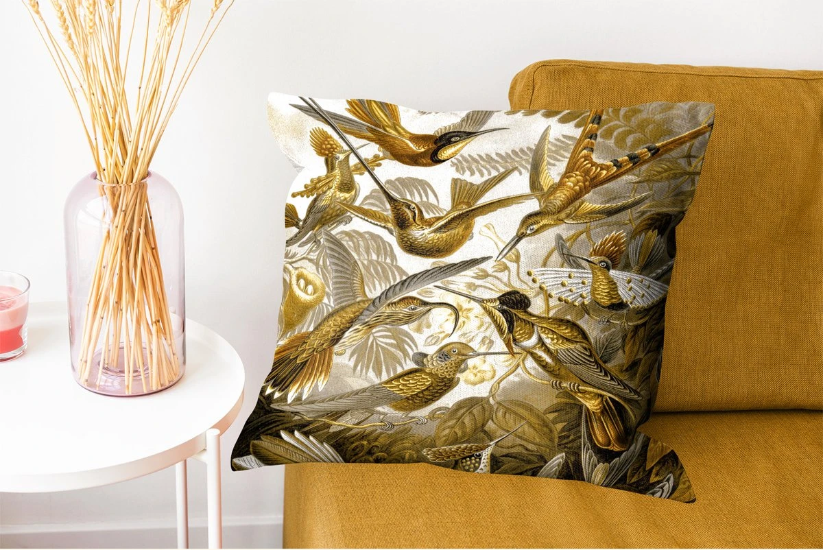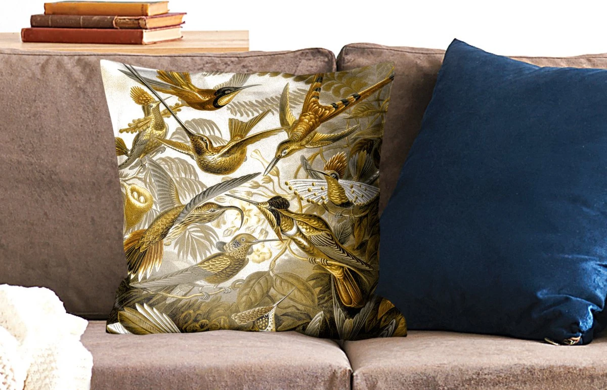 In deze versie van het kunstwerk ‘Trochilidae’ van de oude meester Ernst Haeckel hebben de vogels veren van goud.