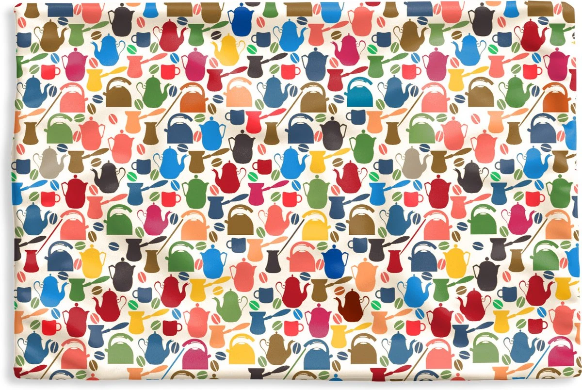 Een patroon van verschillende kleurrijke theepotten.