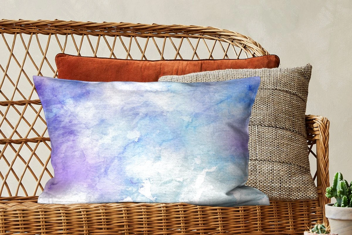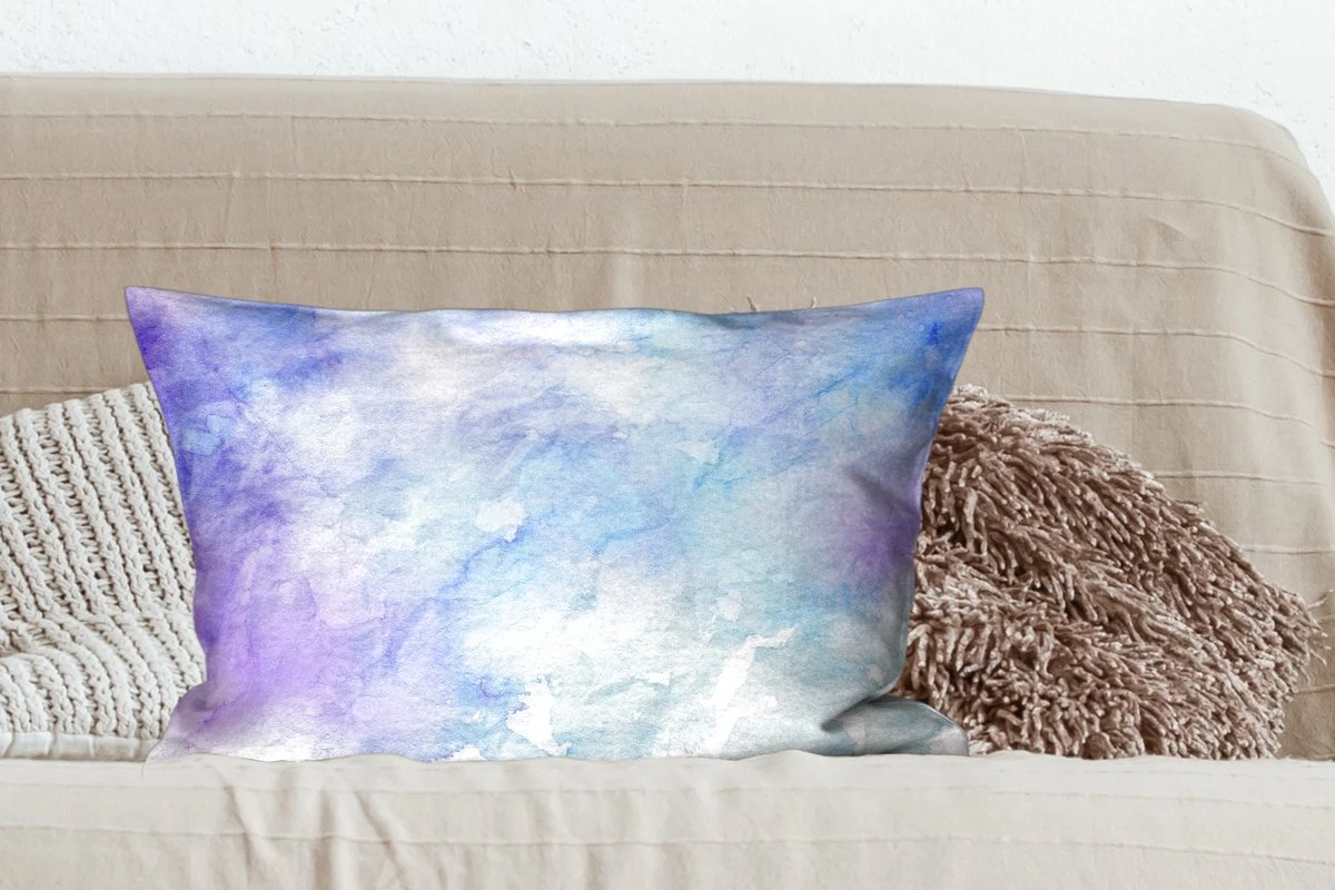 Door de lichtblauwe waterverf basis komen de abstracte paarse en blauwe kleuren tevoorschijn.