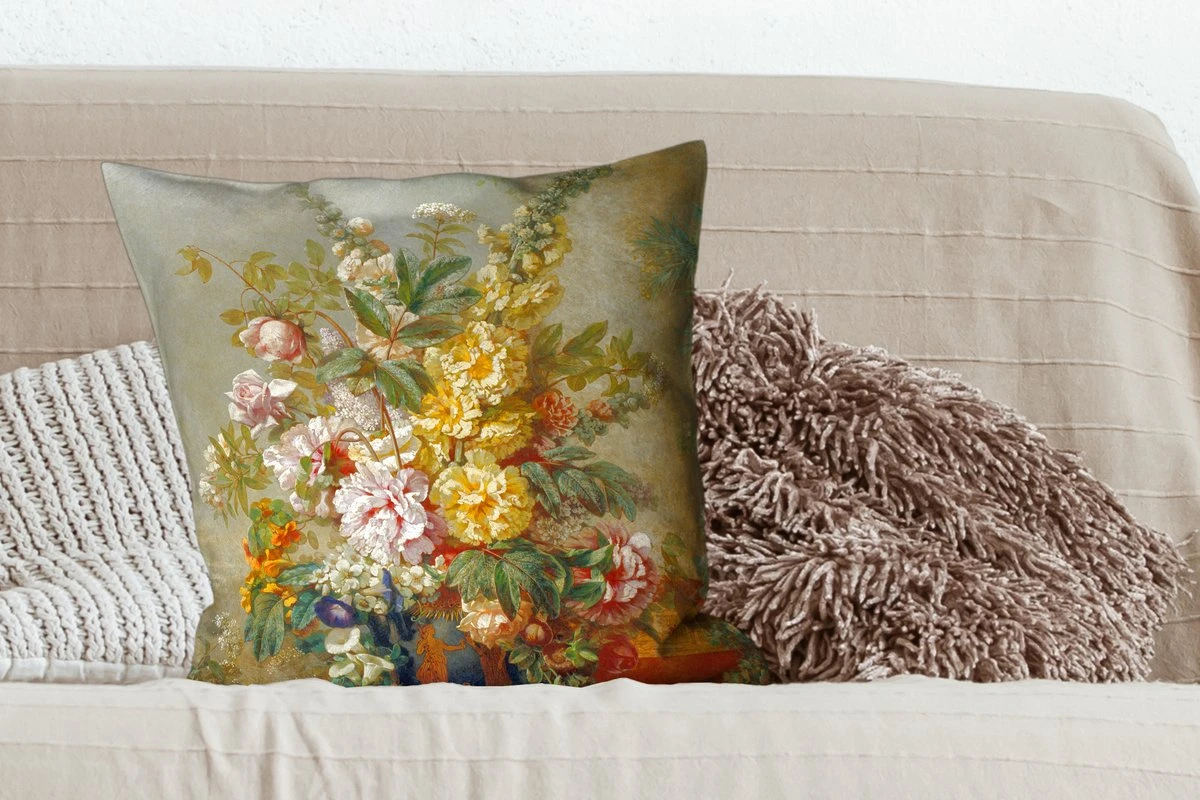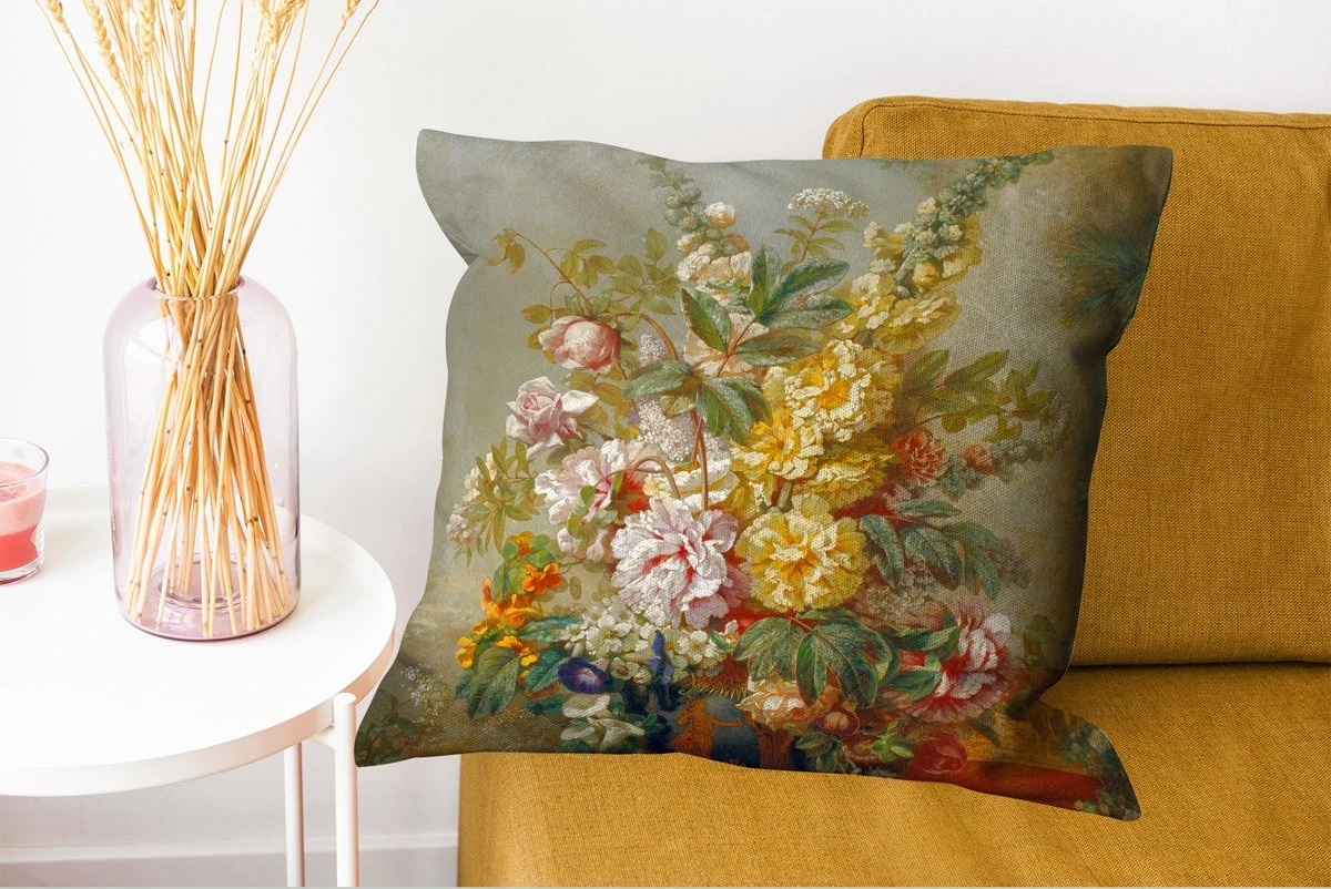 Kussenhoes 60×60 Cm – Grote Vaas Met Bloemen – Josep Mirabent – Schilderij – Katoen / Polyester – Voor Binnen