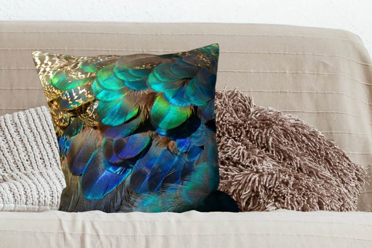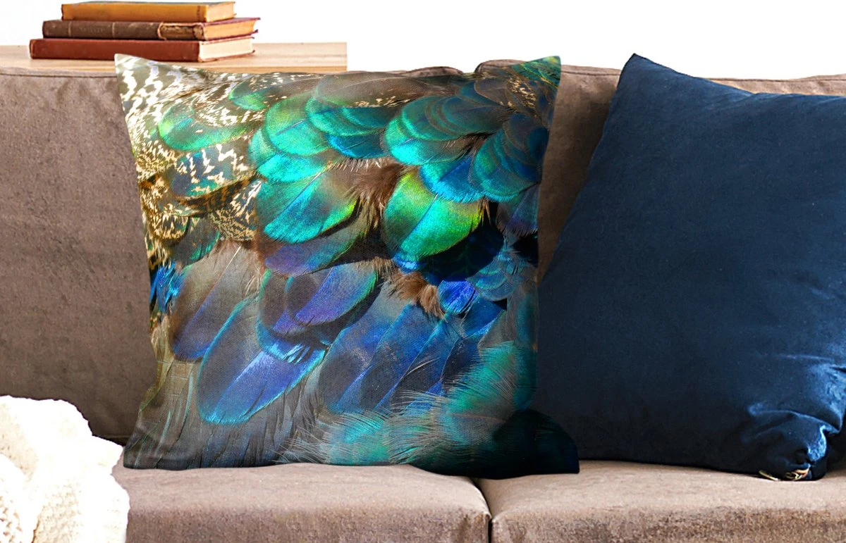 Kussensloop – Veren – Pauwveren – Pauw – Blauw – Kunst – Slaapkamer – Woonkamer