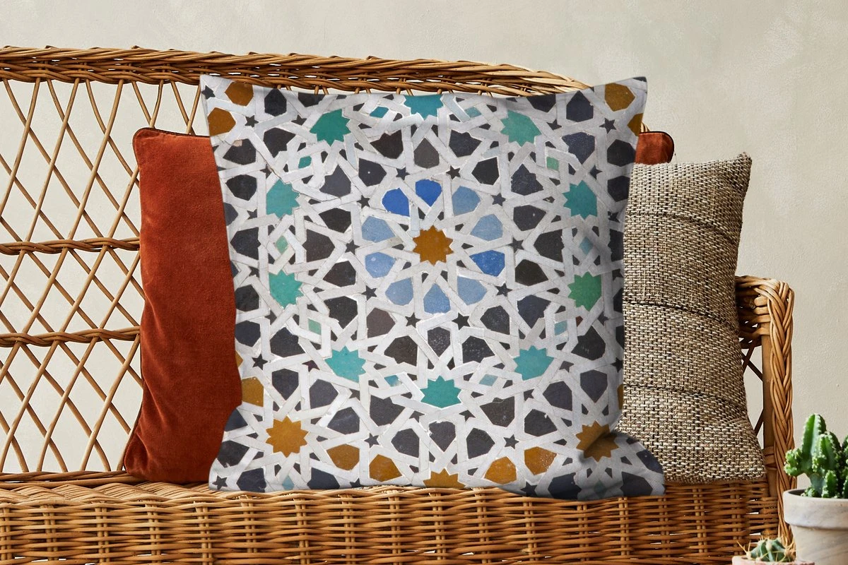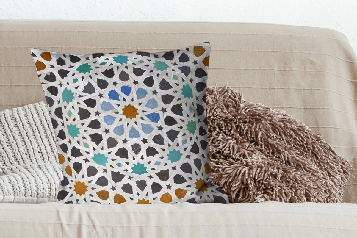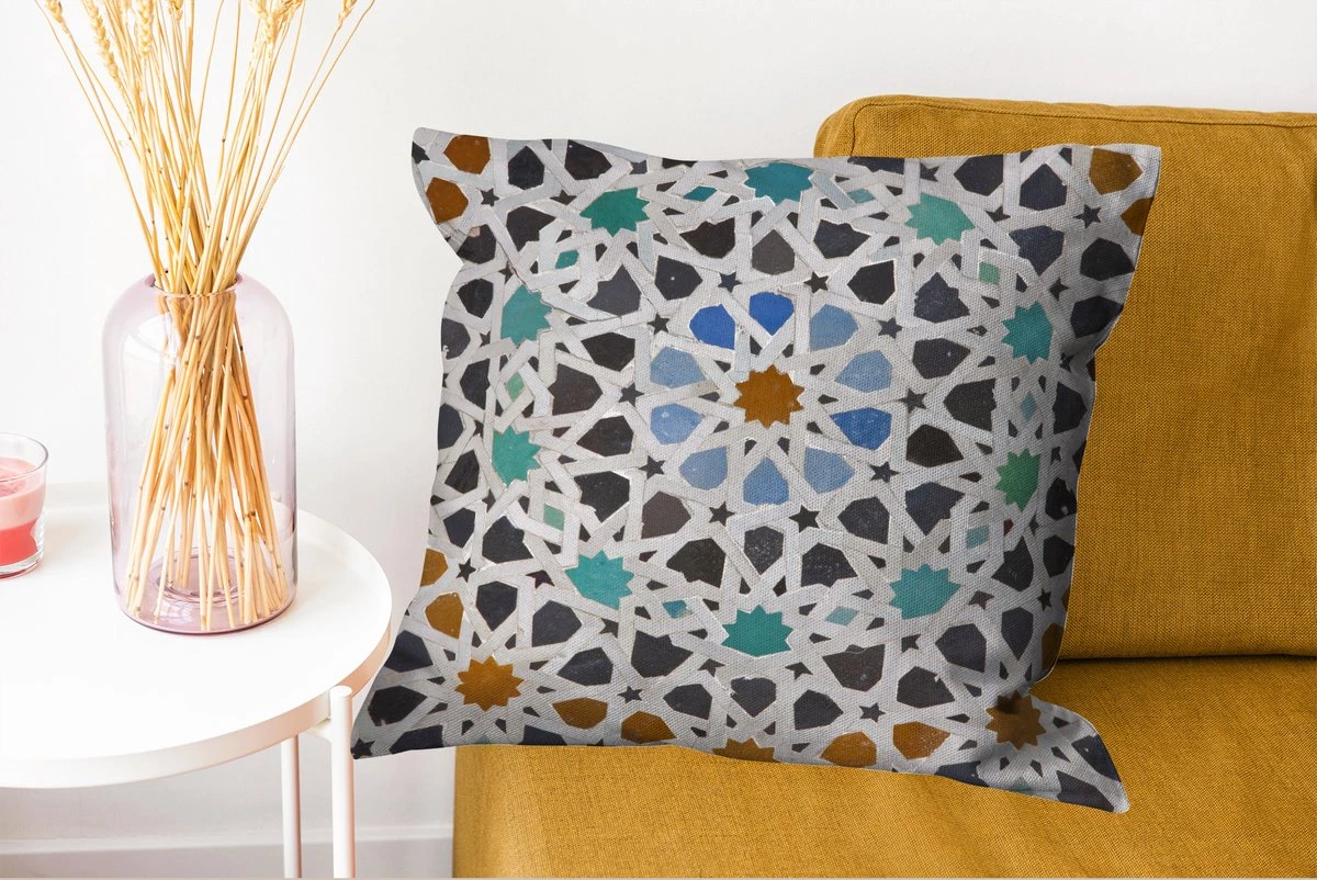 Creëer een gevoel van gezelligheid en warmte met de beste kleuren en prints. Neem bijvoorbeeld dit ”Een Marokkaanse Mozaïekdetail” sierkussen. Deze sierkussens komen door hun vierkante vorm het best tot hun recht op een eigentijdse bank of in een eigentijds interieur. Deze kussens zijn ook volledig wasbaar in de wasmachine, maar controleer de instructies voordat je ze in de machine stopt om verkleuring te voorkomen. Houd er daarnaast rekening mee dat deze sierkussens gemaakt zijn van katoen. Wil je weten of dit sierkussen op jouw bank of bed past? De sierkussens zijn 15 cm dik, 60 cm lang en 60 cm breed. Is het interieur van jouw huis kleurrijk en divers? Dan past dit meerkleurige sierkussen goed bij de rest van je inrichting.