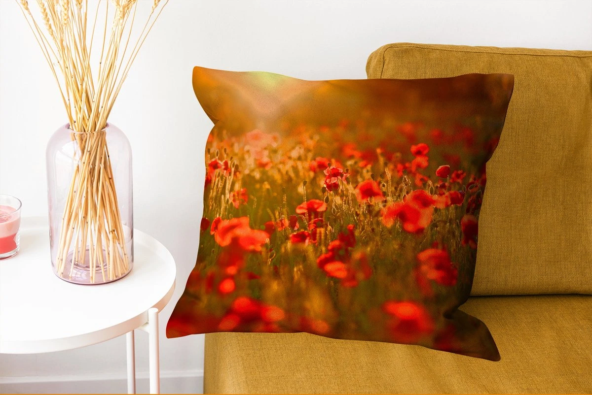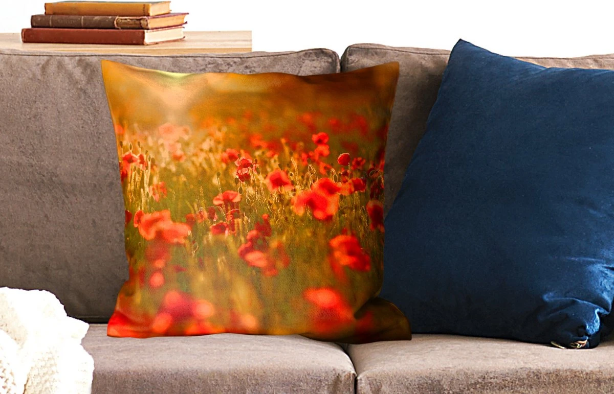Met dit ‘Gloed Over De Klaprozen In Het Veld’ sierkussen krijgt je bank, stoel of loveseat een hele nieuwe look, kan je het al voor je zien? Deze sierkussens hebben een lieflijk bloemenpatroon dat een rustgevende sfeer in je woonkamer creëert. Deze sierkussens zijn vierkant van vorm en staan het mooist op een eigentijdse bank of in een eigentijds interieur. Deze sierkussens zijn ook volledig wasbaar, maar zorg ervoor dat je de wasinstructies controleert voordat je ze in de wasmachine gooit om verkleuring te voorkomen. Bovendien zijn deze sierkussens gemaakt van katoen. Vraag je je af of dit sierkussen op jouw bank of bed past? 50 cm lang, 15 cm dik en 50 cm breed zijn de afmetingen van deze sierkussens. Kleurrijk en divers interieur? Dan past dit meerkleurige sierkussen goed in je interieur.