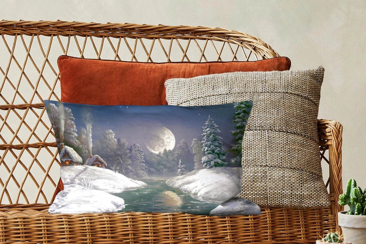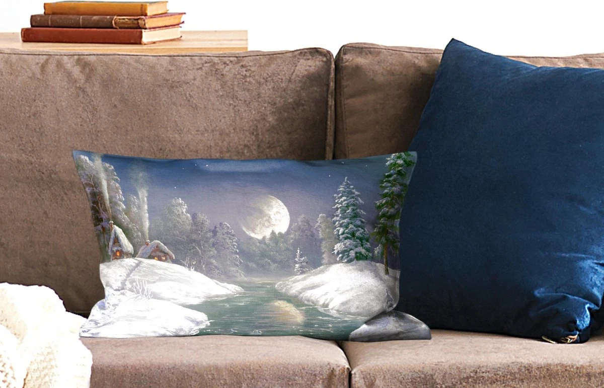 Creëer een gevoel van gezelligheid en warmte met de beste kleuren en prints. Neem bijvoorbeeld dit ”Winter Maan Huis” sierkussen. Door hun rechthoekige vorm komen deze sierkussens goed tot hun recht aan de uiteinden van jouw bank of bed. Deze sierkussens zijn ook volledig wasbaar, maar zorg ervoor dat je de wasinstructies controleert voordat je ze in de wasmachine gooit om verkleuring te voorkomen. Verder wordt katoen gebruikt om deze sierkussens te maken. Wil je weten of dit sierkussen bij jouw bank of bed past? Sierkussens in deze collectie zijn 15 cm dik, 50 cm lang en 30 cm breed. Kleurrijk en divers interieur? Dan past dit meerkleurige sierkussen goed in je interieur.