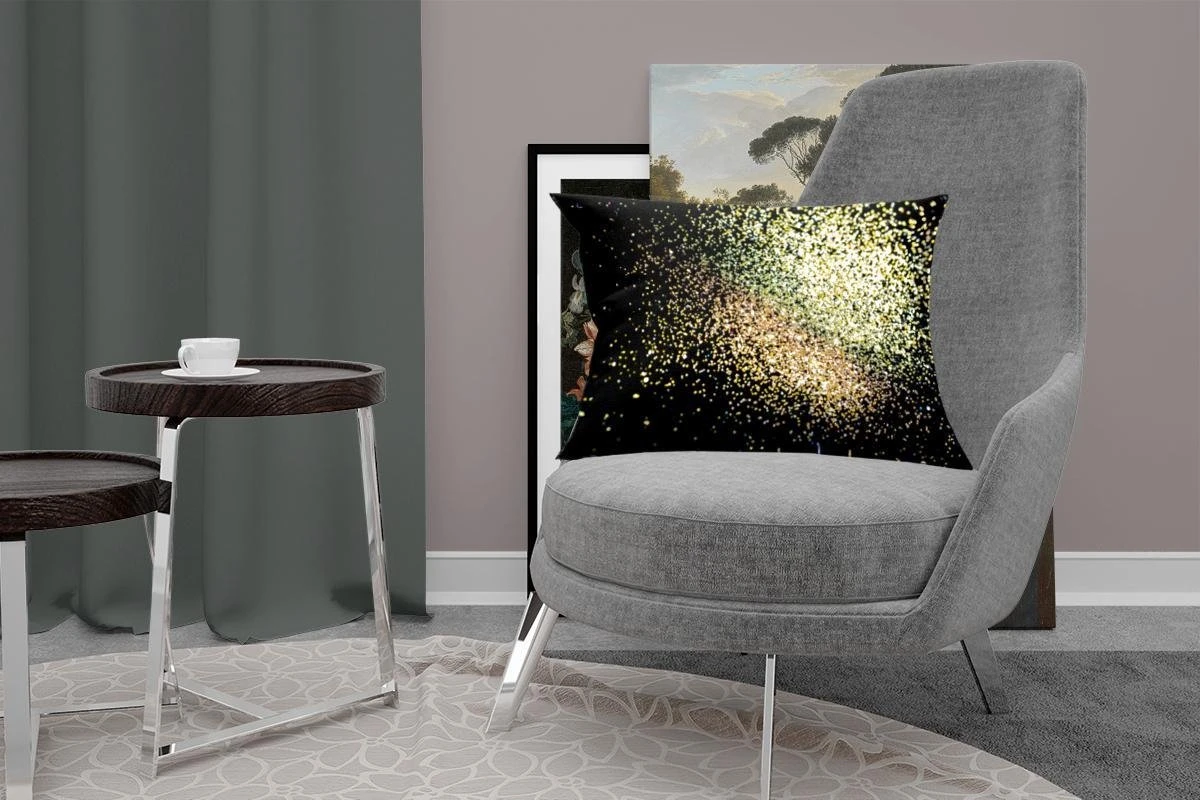 Op deze adembenemende afbeelding zijn goudkleurige glitters te zien. De gouden glitters vallen goed op tegen de zwarte achtergrond. Deze afbeelding past perfect in een meisjesslaapkamer.