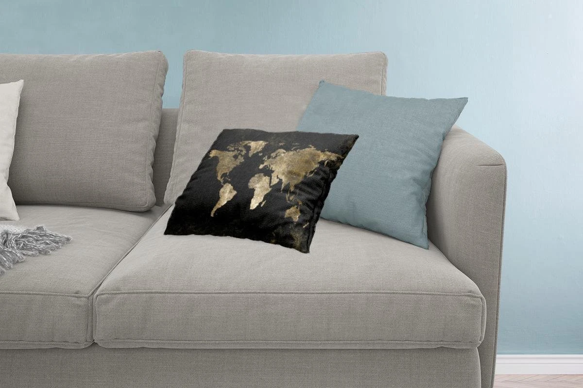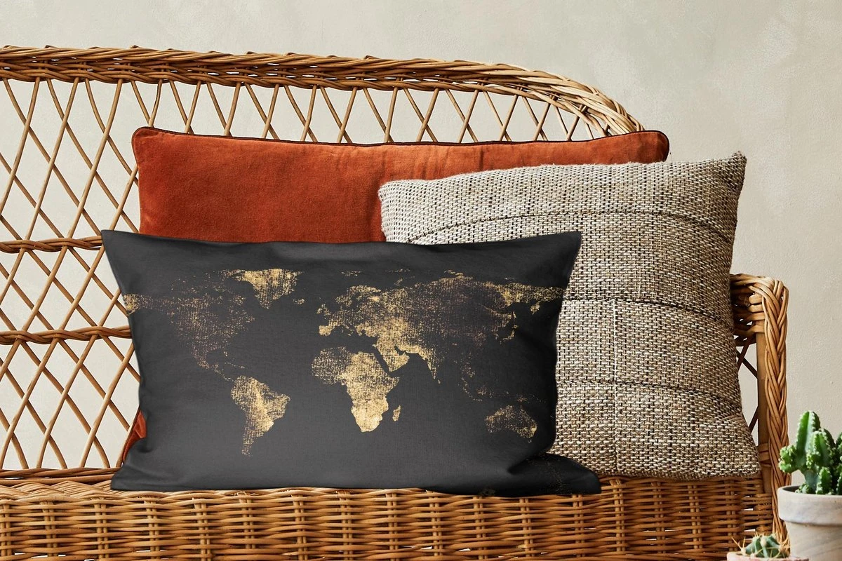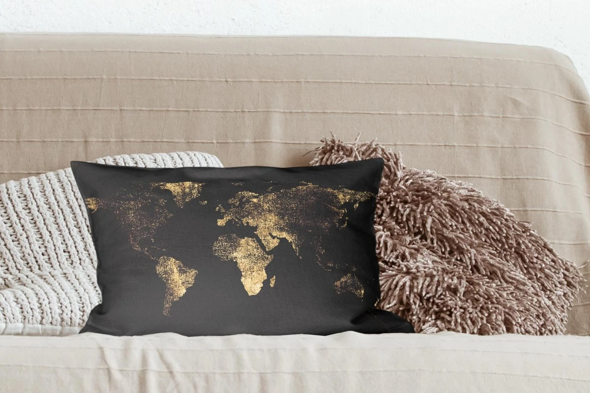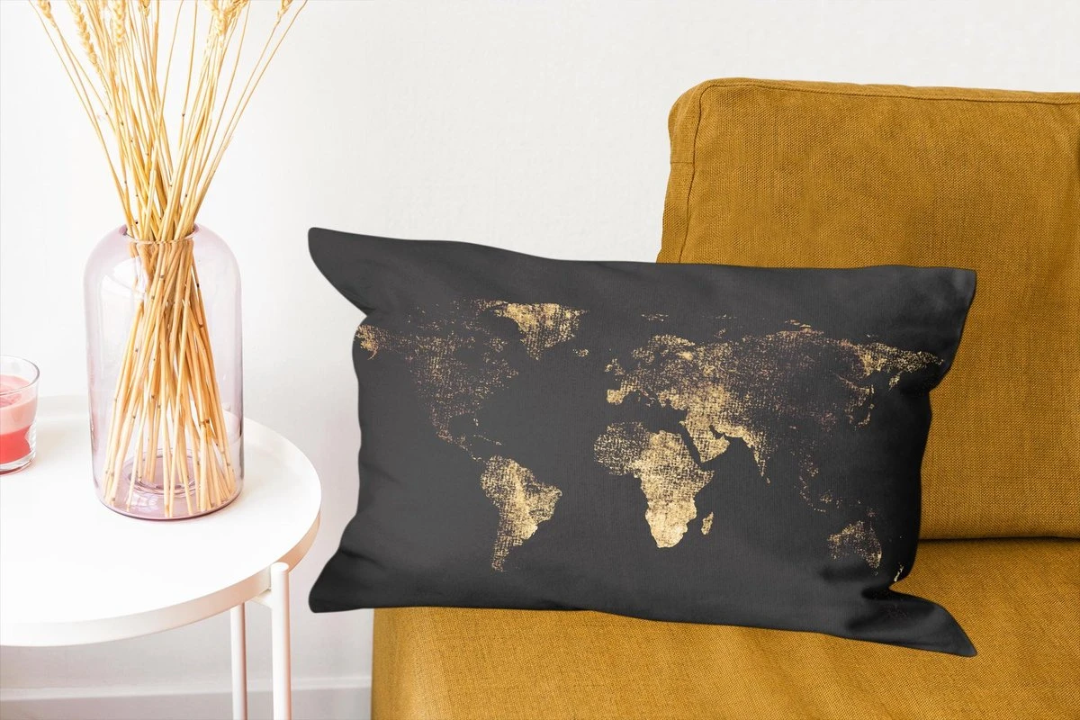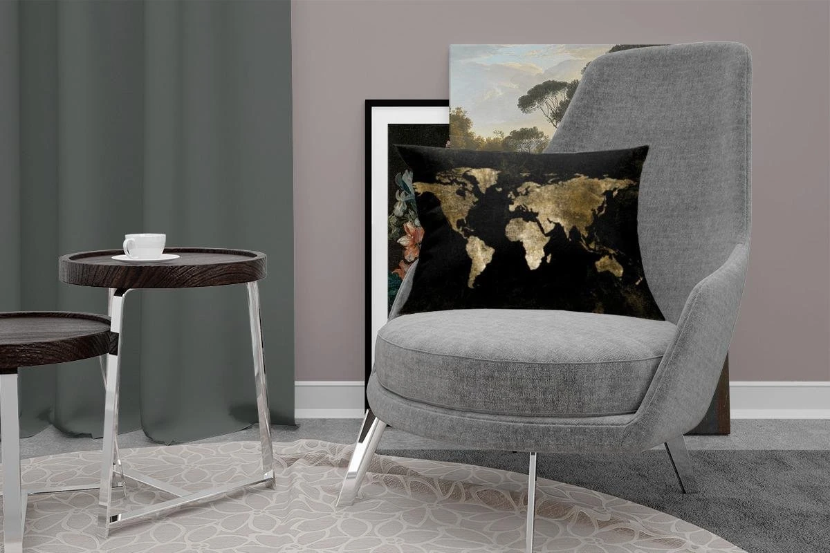 Sierkussen – Wereldkaart – Zwart – Goud – Kussens woonkamer