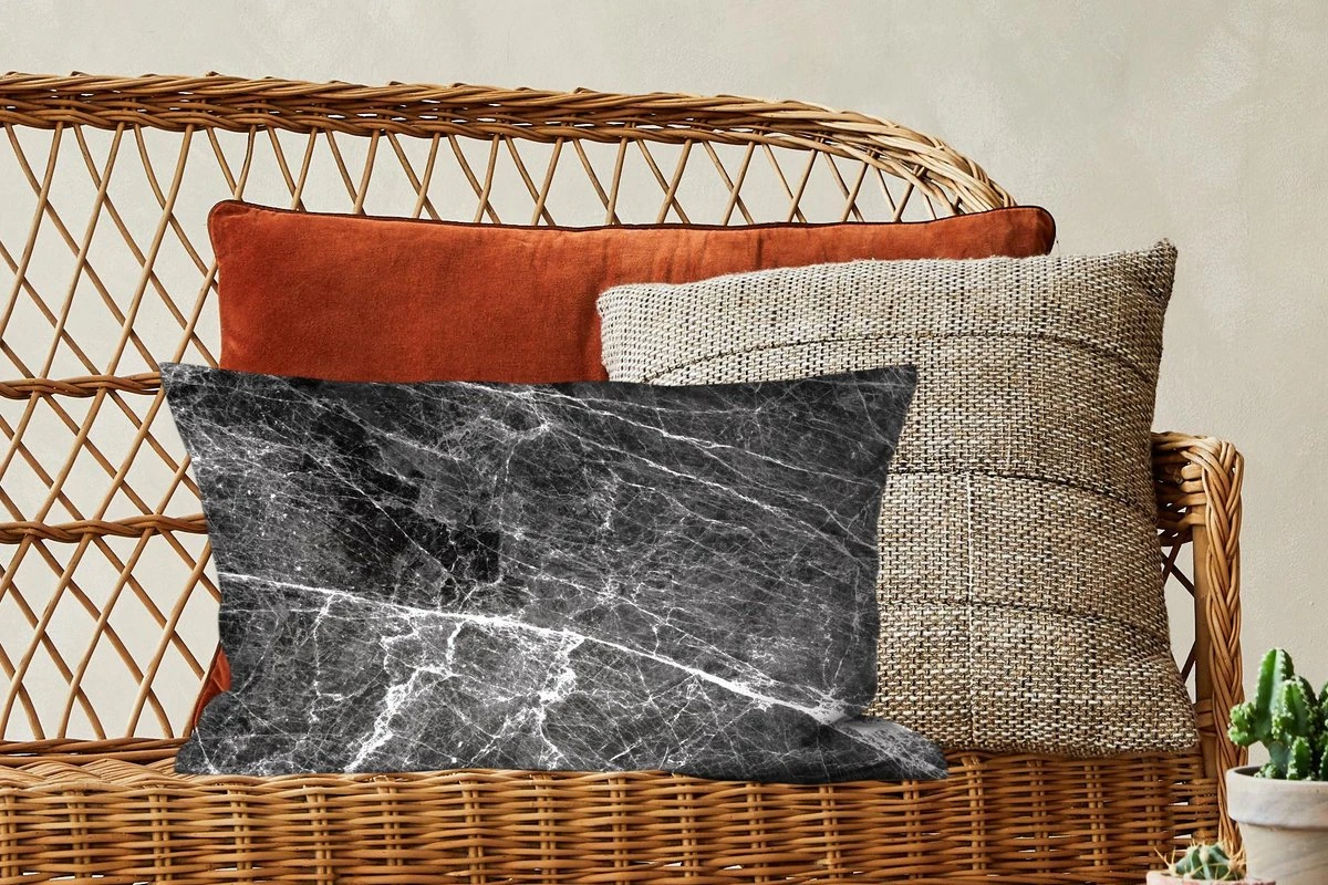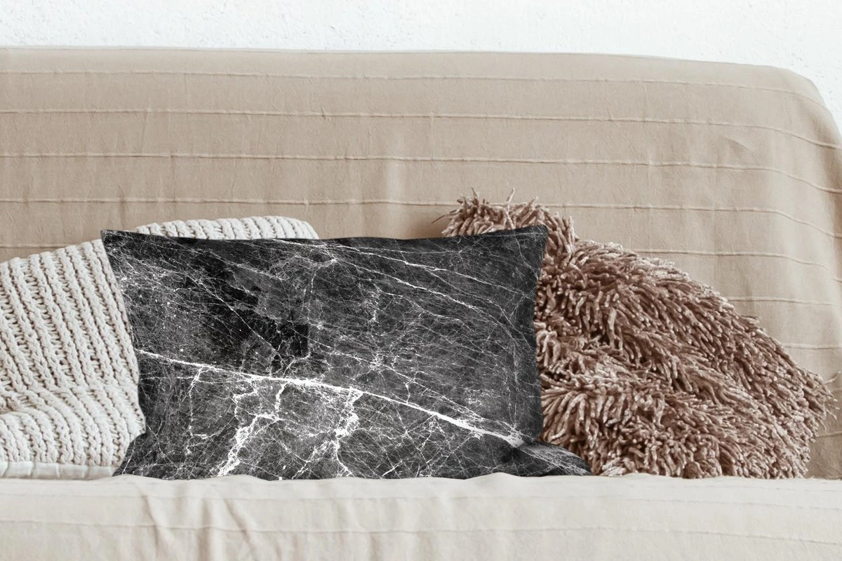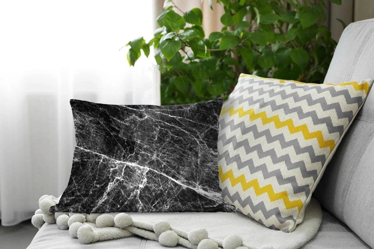 Een abstracte achtergrond van een zwart vlak met witte lijnen. Het patroon van de lijnen doet denken aan de steensoort marmer.