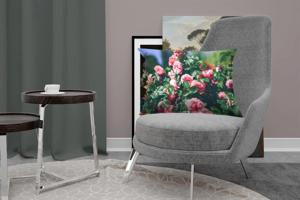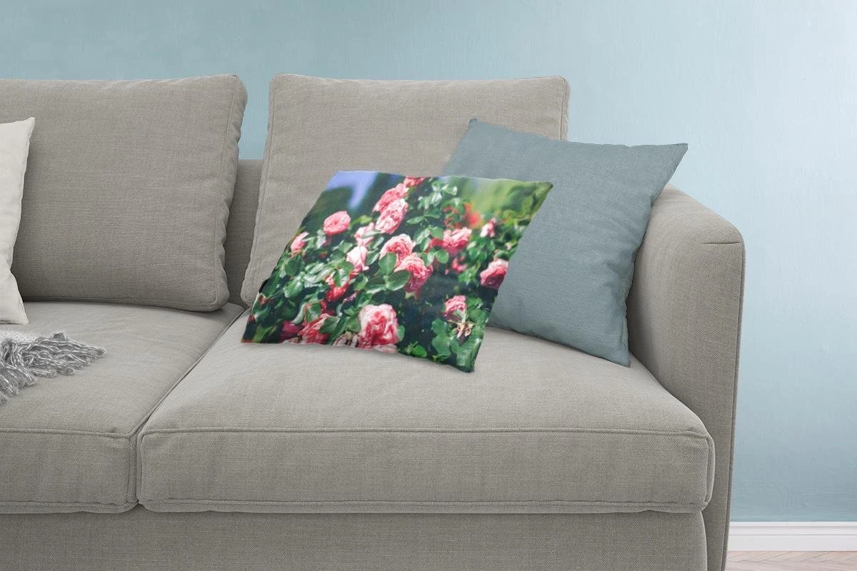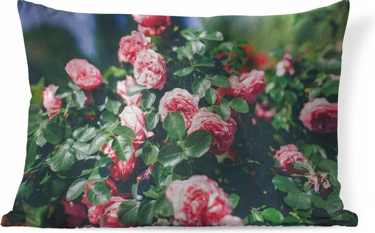 Sierkussen – Mooie roze roos in zomertuin – Kussens woonkamer
