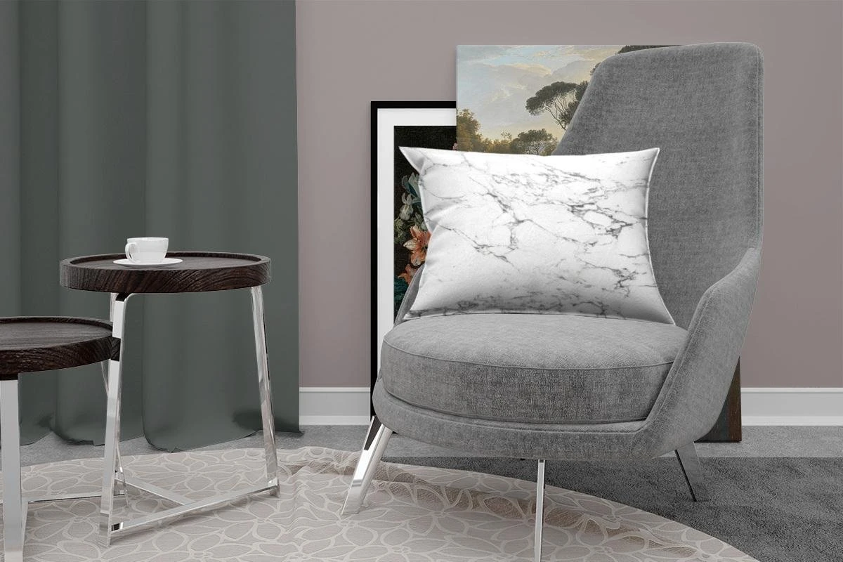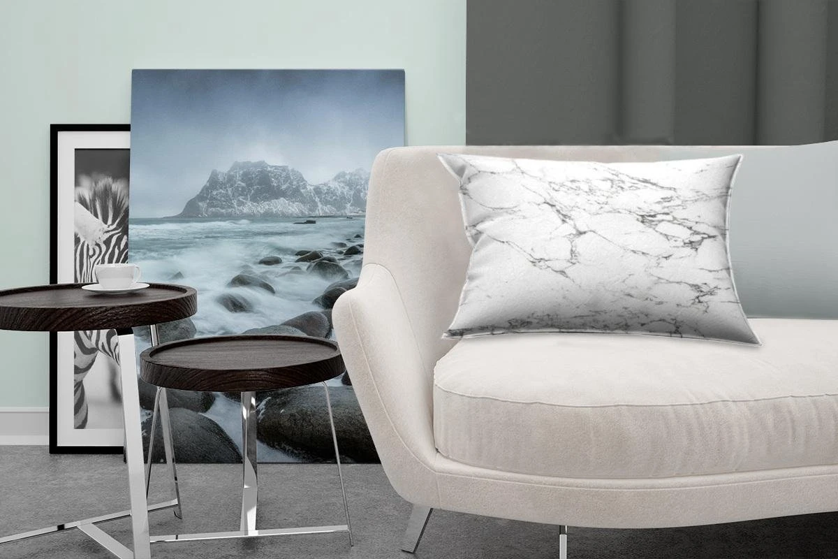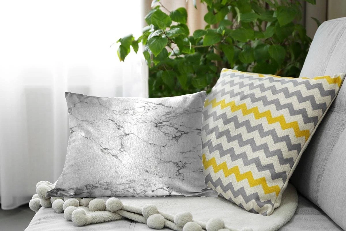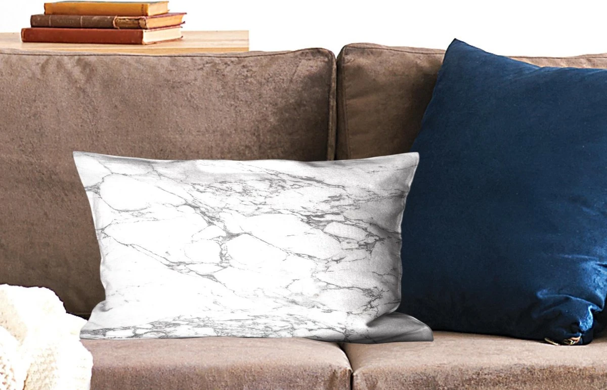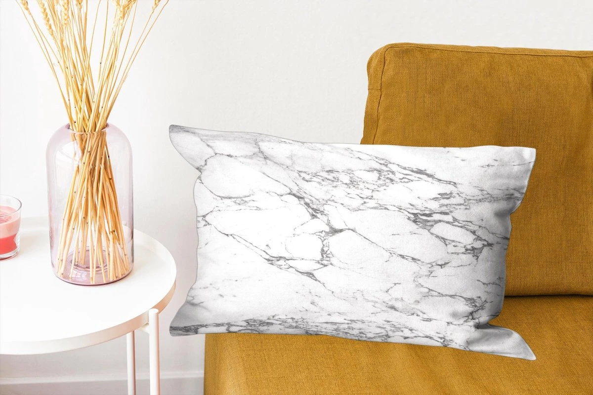 Sierkussen – Zwarte patronen door wit marmer – Kussens woonkamer