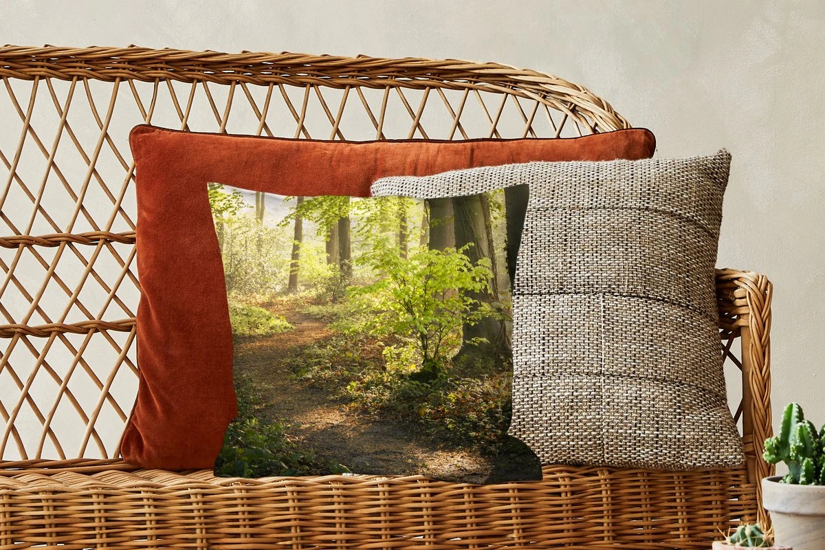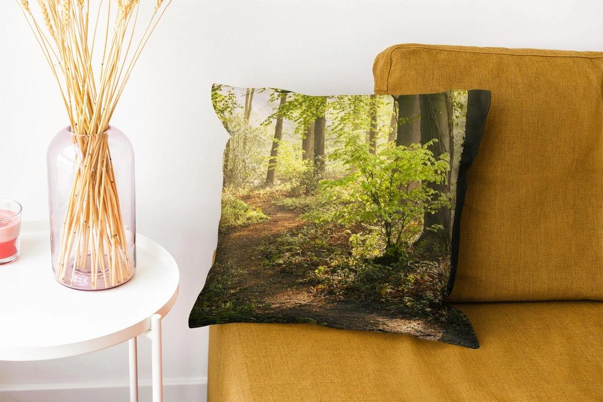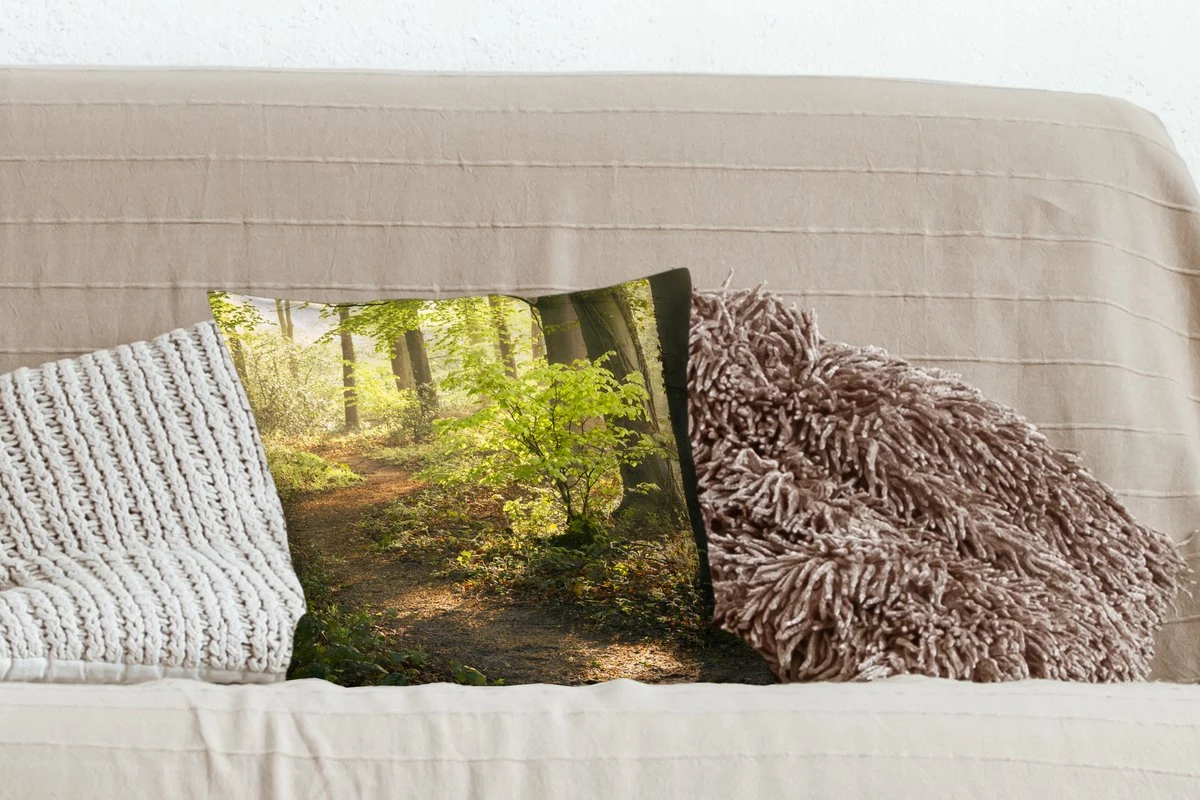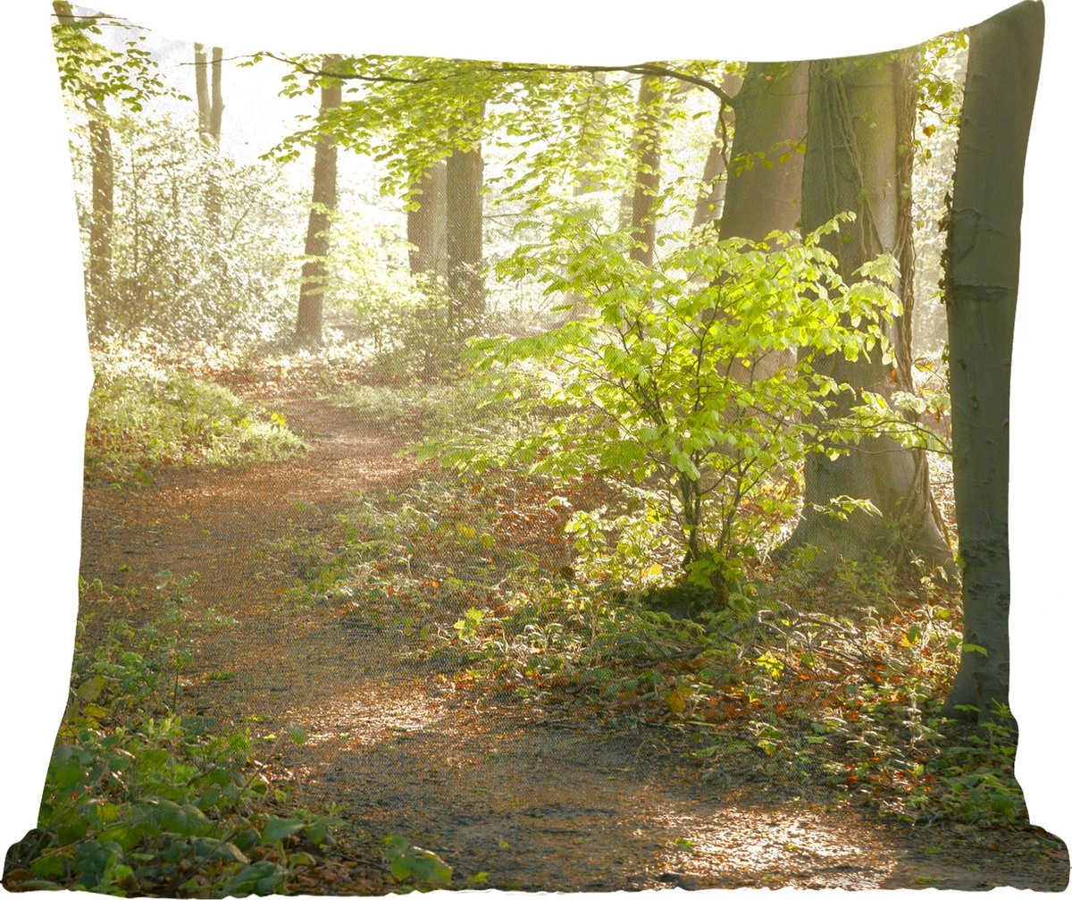Sierkussen – Bos – Bomen – Pad – Zon – Planten – Bladeren – Natuur – Kussens woonkamer