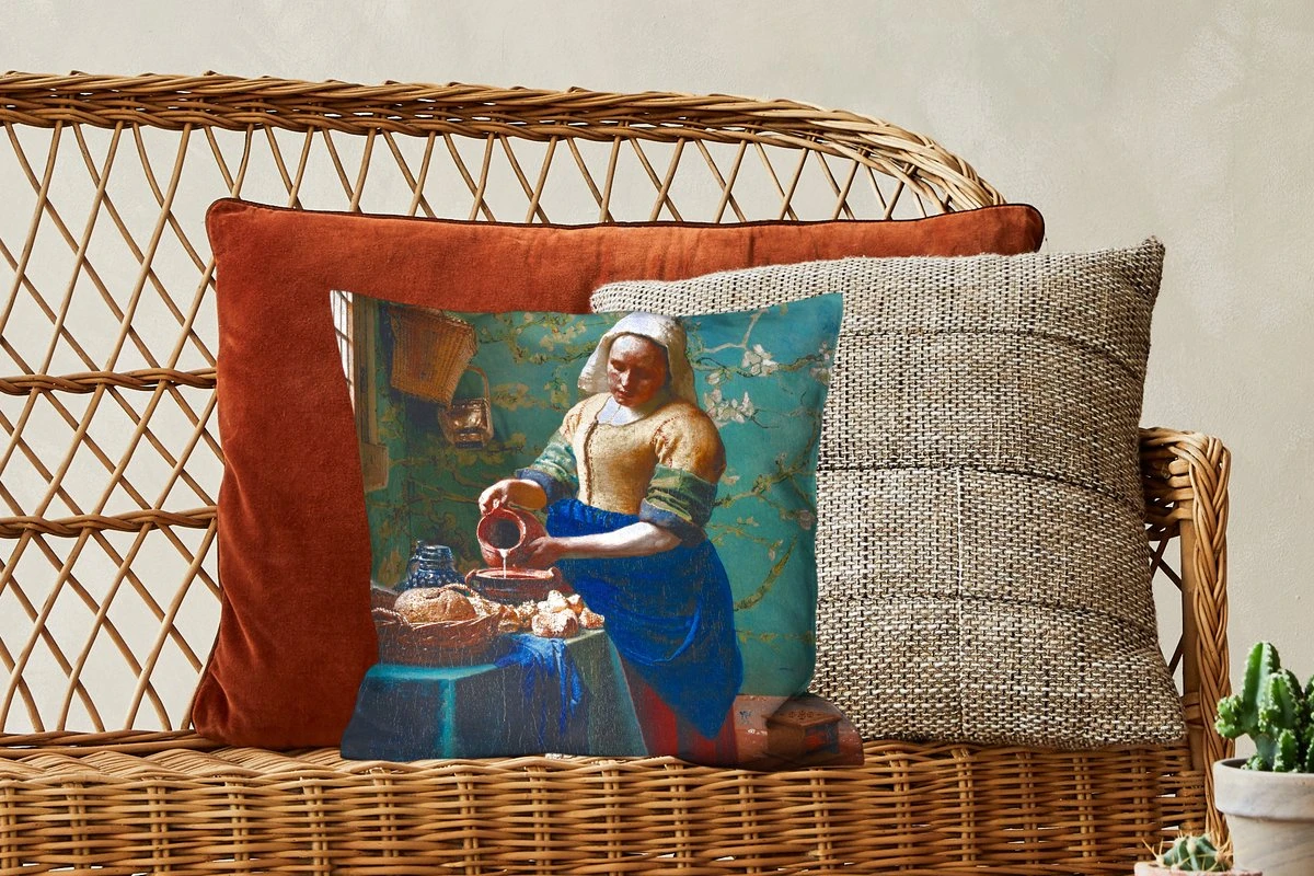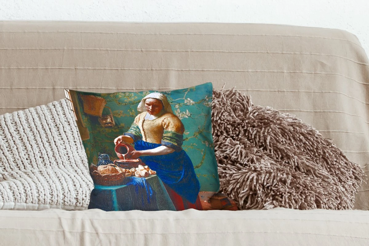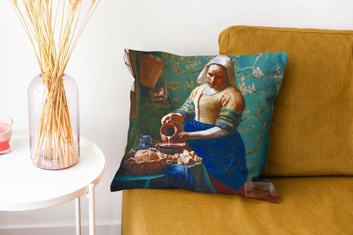 Sierkussens – Kussentjes Woonkamer – 40×40 Cm – Melkmeisje – Amandelbloesem – Van Gogh – Vermeer – Schilderij – Oude Meesters