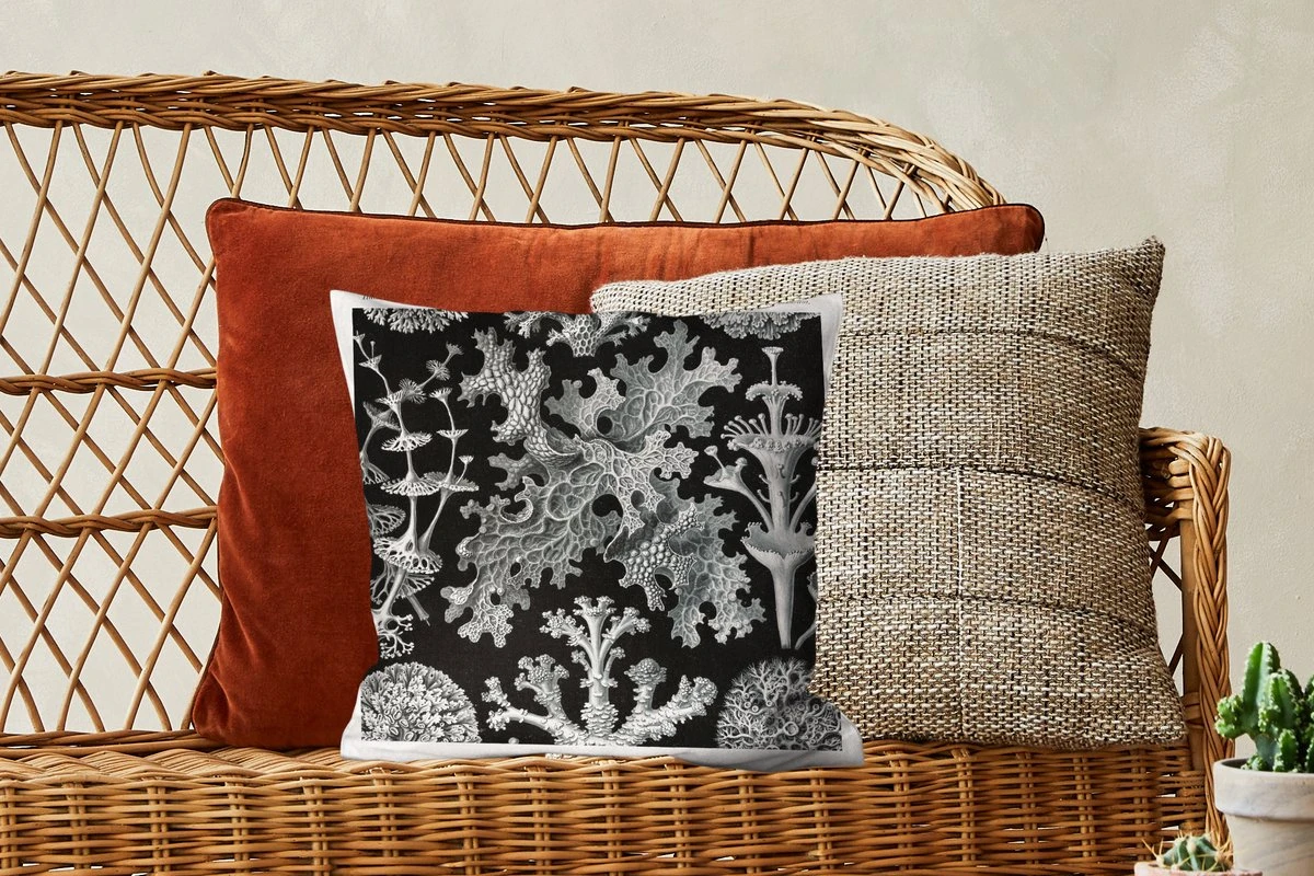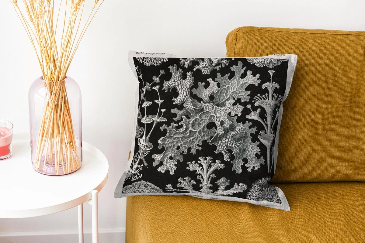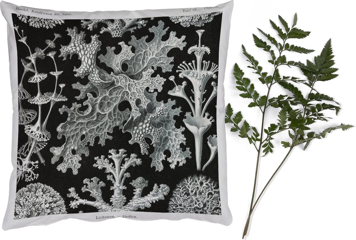 Sierkussen – Mos – Botanisch – Vintage – Zwart wit – Schimmel illustratie – Kussens woonkamer