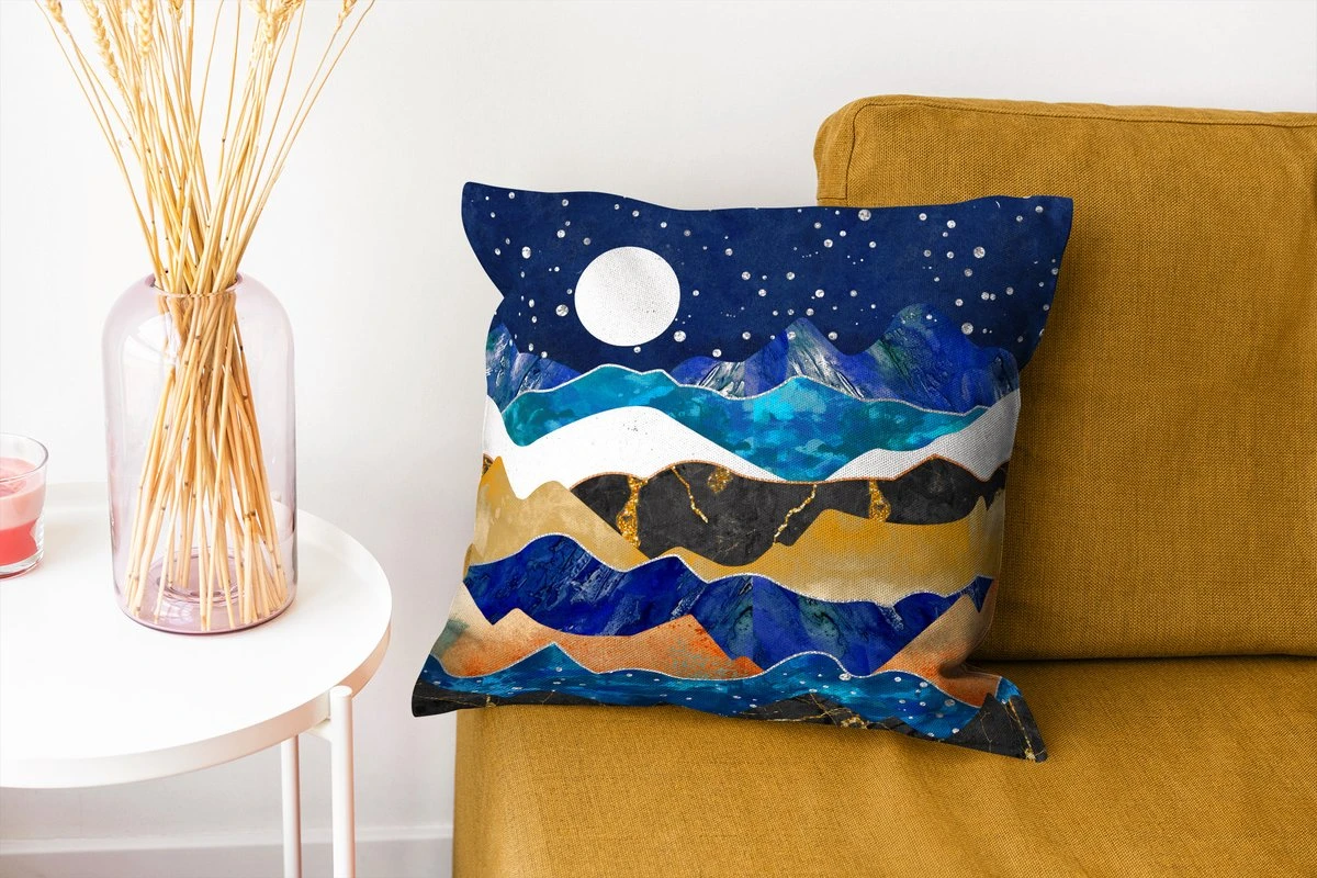 Sierkussen – Nacht – Goud – Marmer – Abstract – Landschap – Berg – Kussens woonkamer
