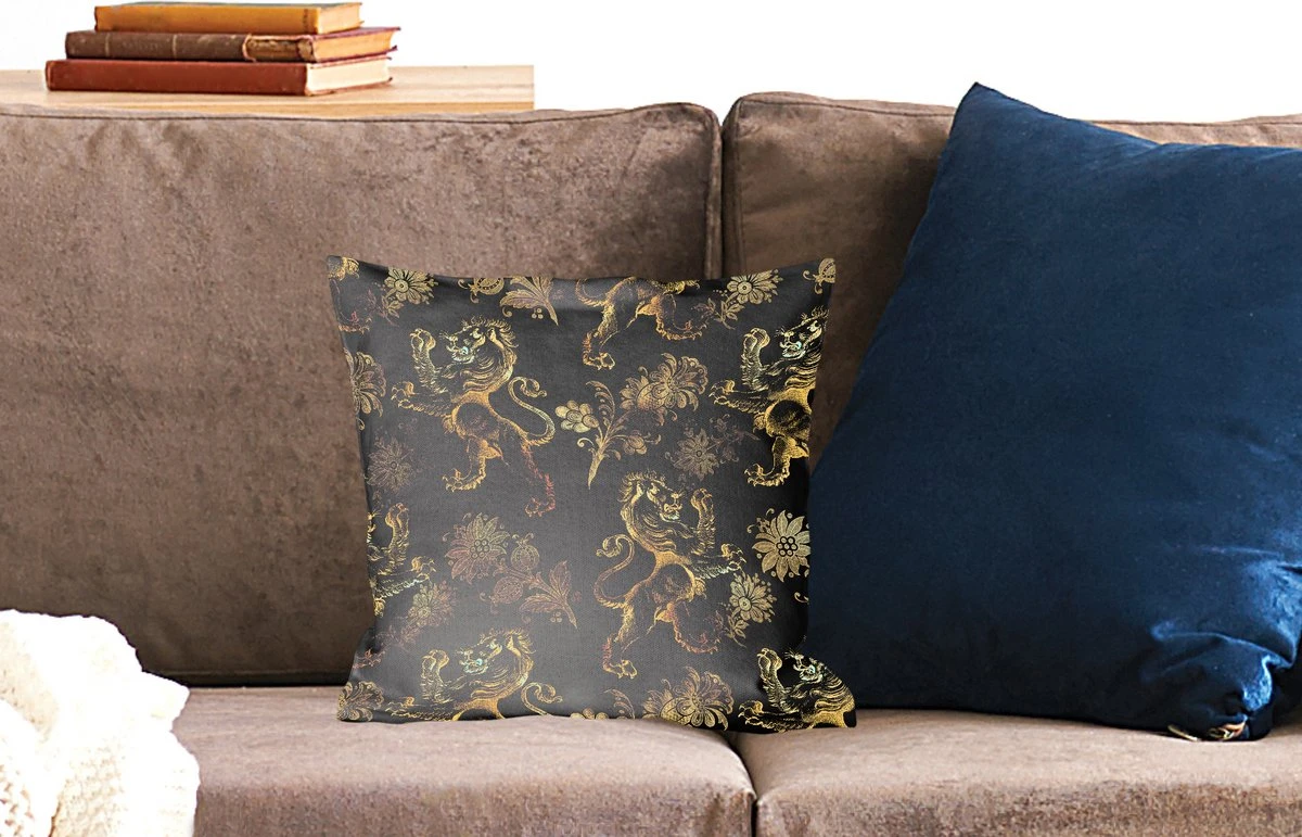 Sierkussen – Patronen – Draak – Goud – Kussens woonkamer