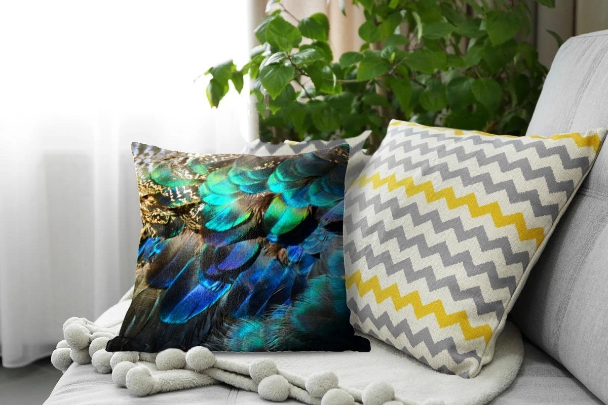 Sierkussen – Veren – Blauw – Groen – Kussens woonkamer