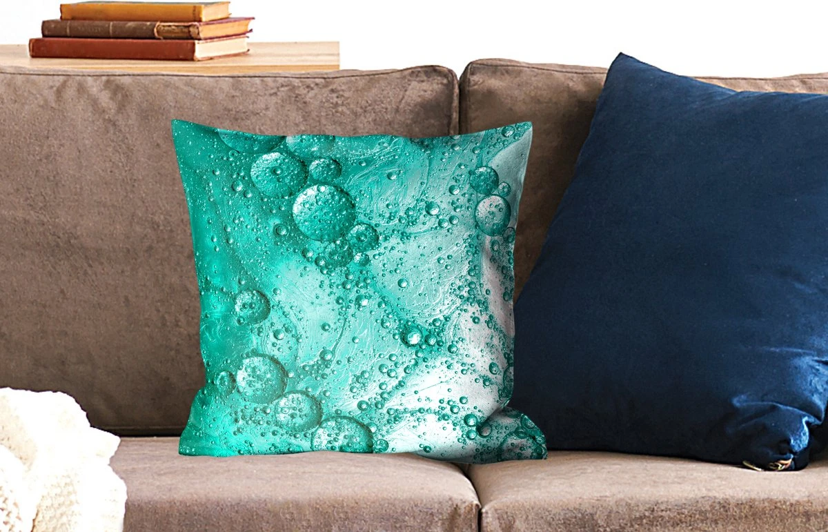 Sierkussen – Druppels op een turquoise achtergrond – Kussens woonkamer
