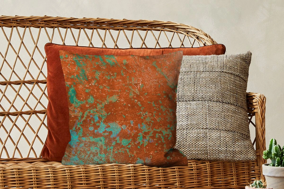 Sierkussen – Staalplaat – Turquoise – Roest – Kussens woonkamer