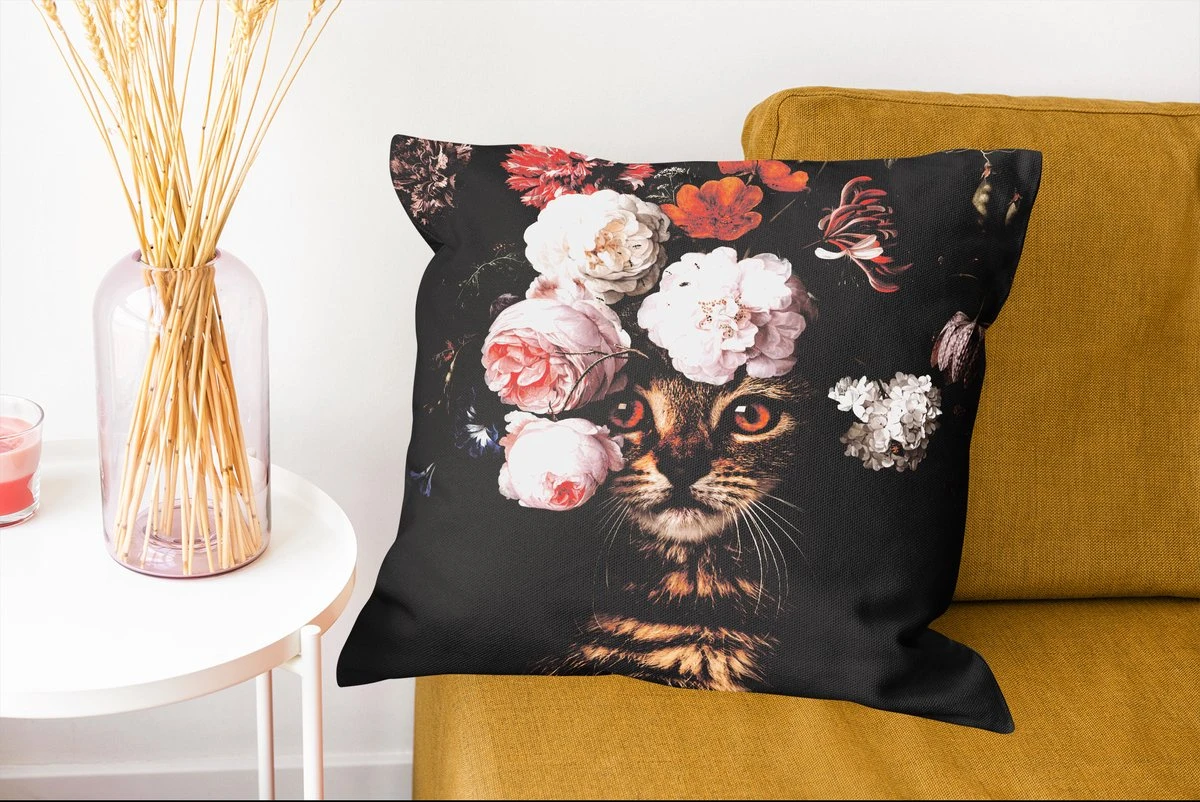 Sierkussen – Kat – Bloemen – Huisdier – Kussens woonkamer