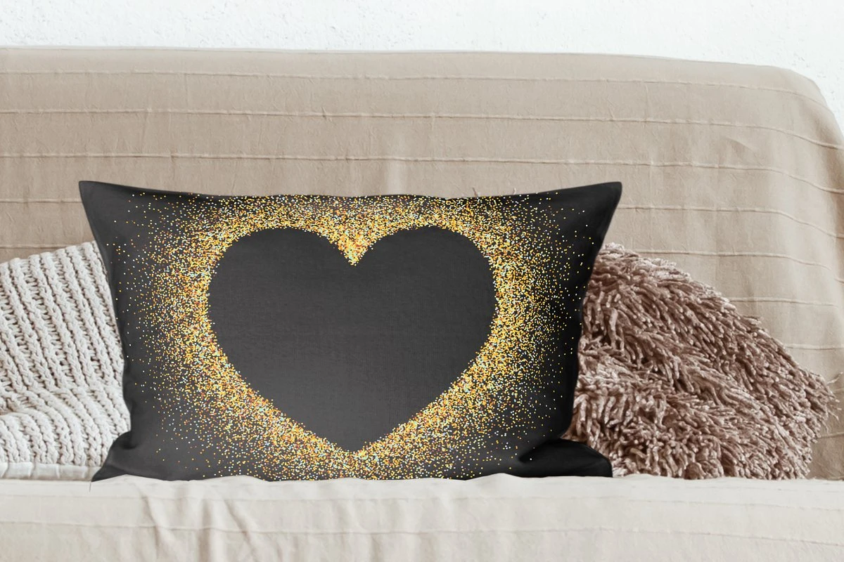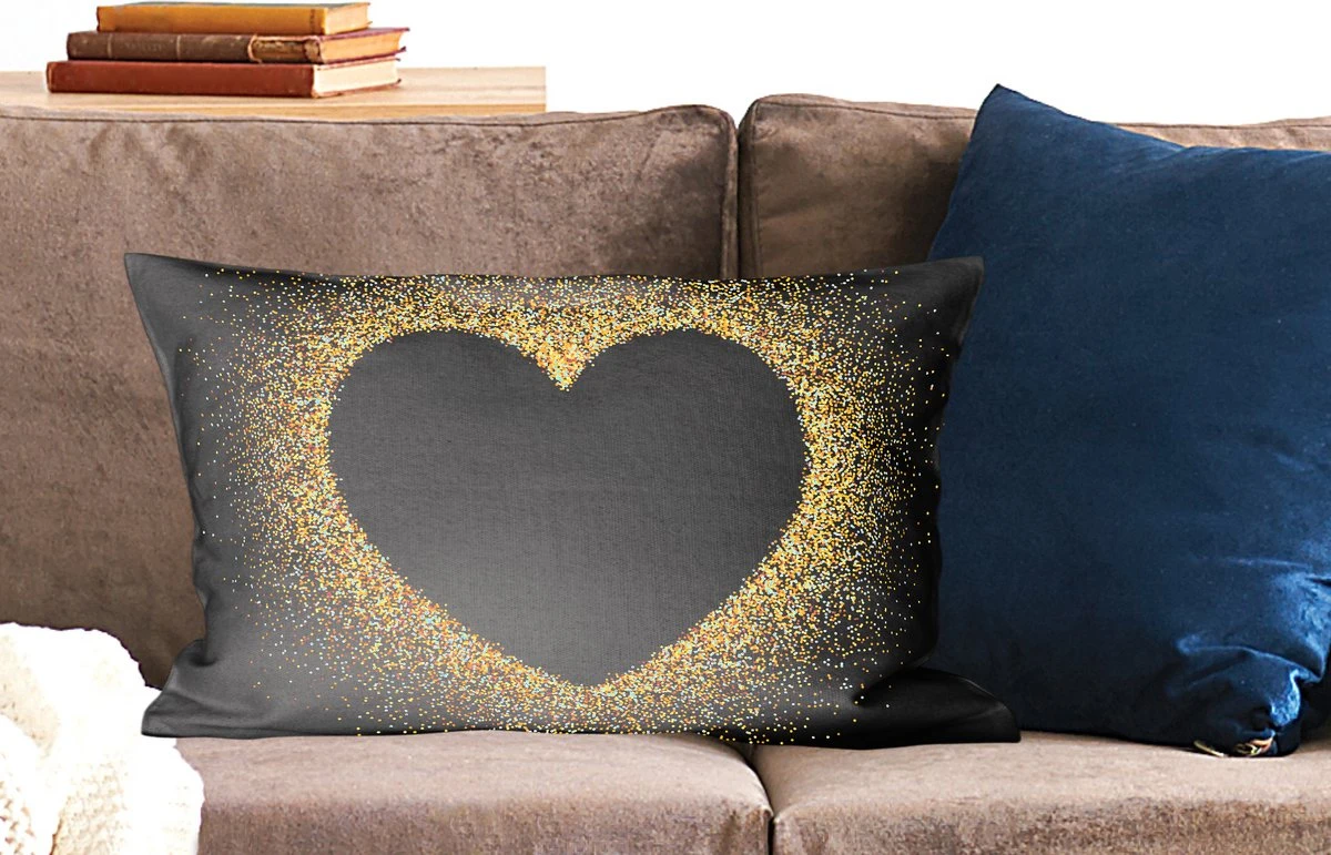 Sierkussen – Gouden hart op een zwarte achtergrond – Kussens woonkamer