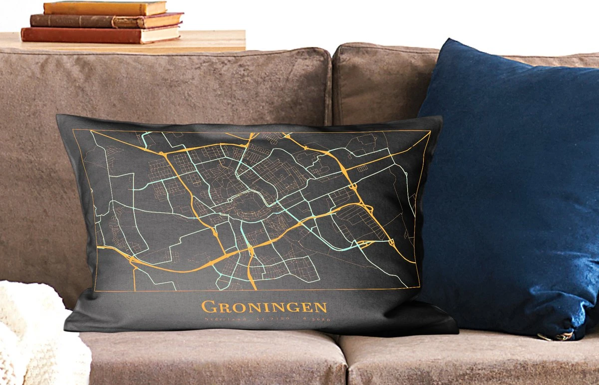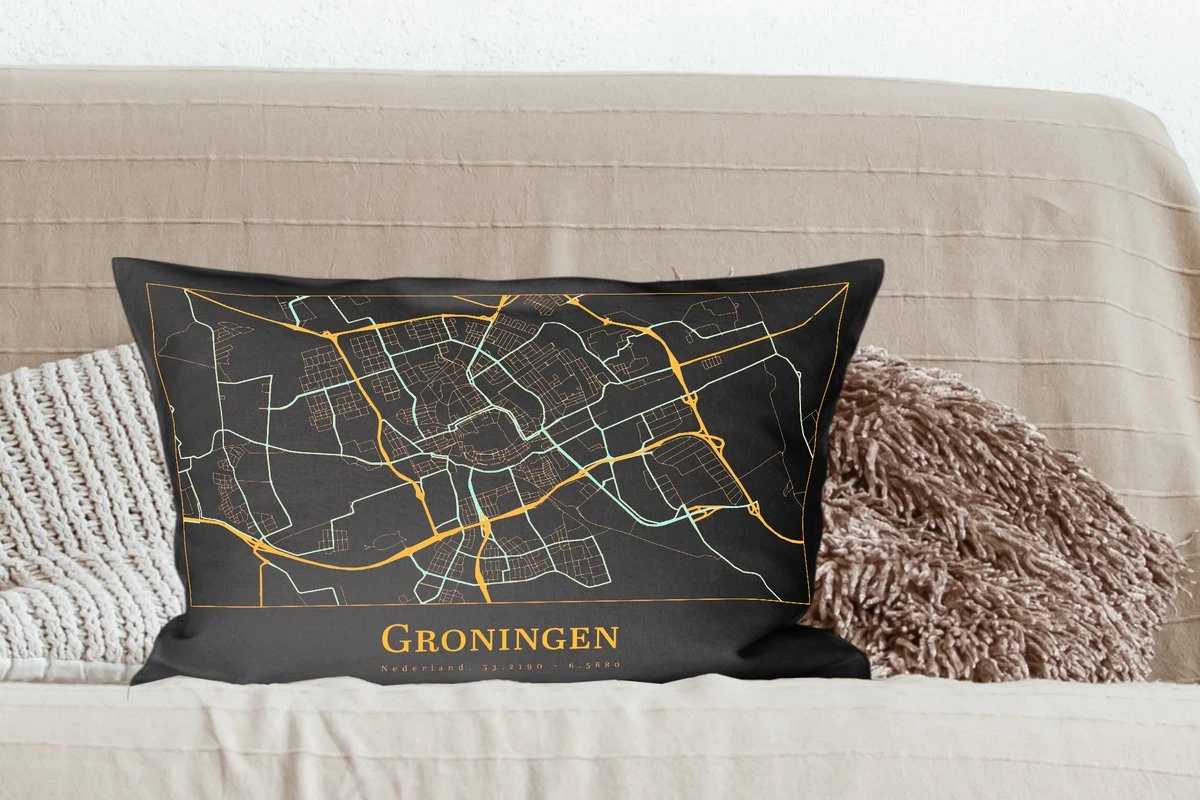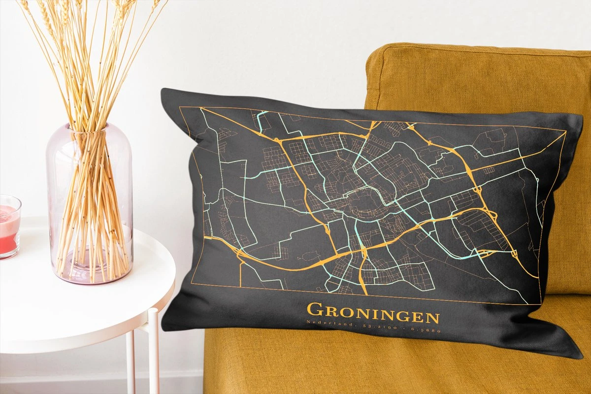 Sierkussen – Kaart – Groningen – Luxe – Goud – Zwart – Kussens woonkamer