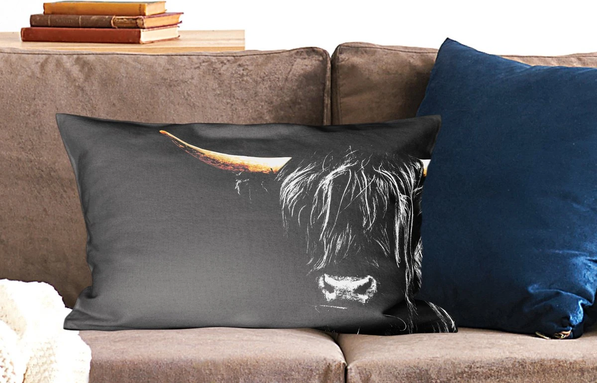 Sierkussen – Schotse hooglander – Goud – Vacht – Dieren – Koe – Kussens woonkamer