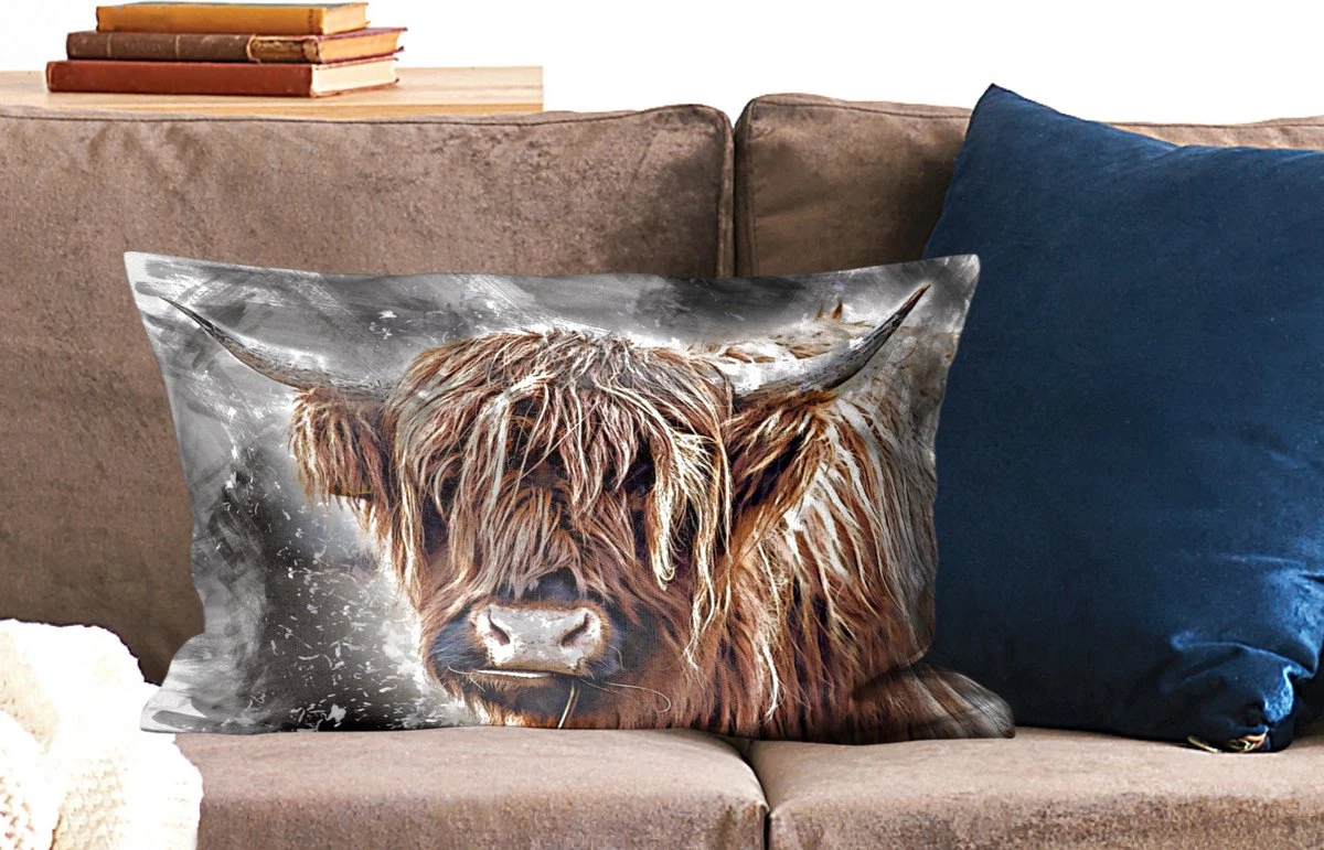 Sierkussen – Schotse hooglander – Verf – Koe – Kussens woonkamer