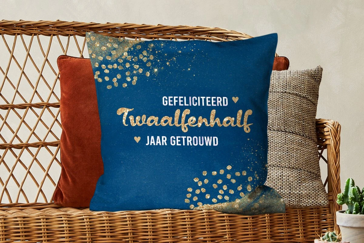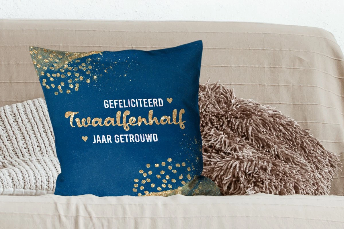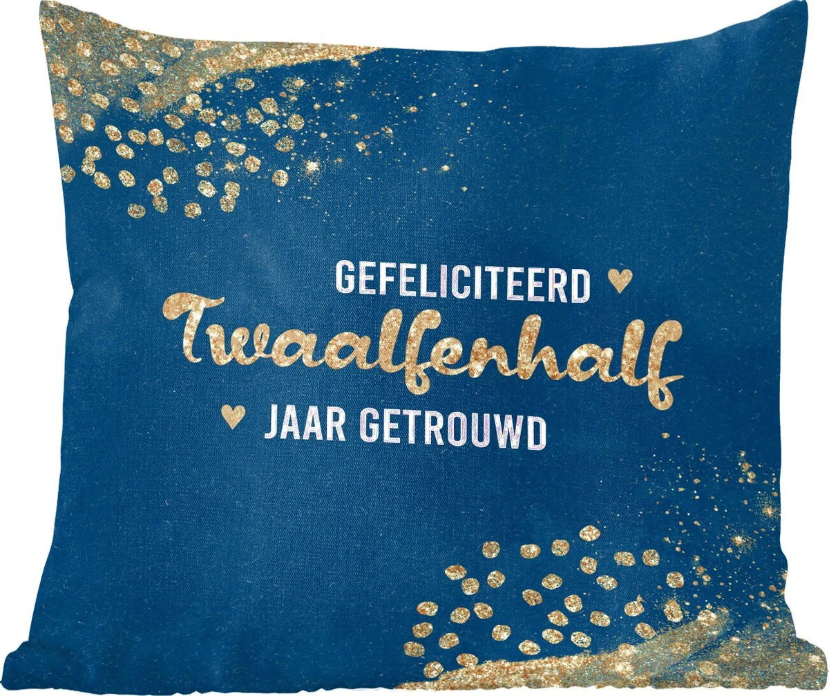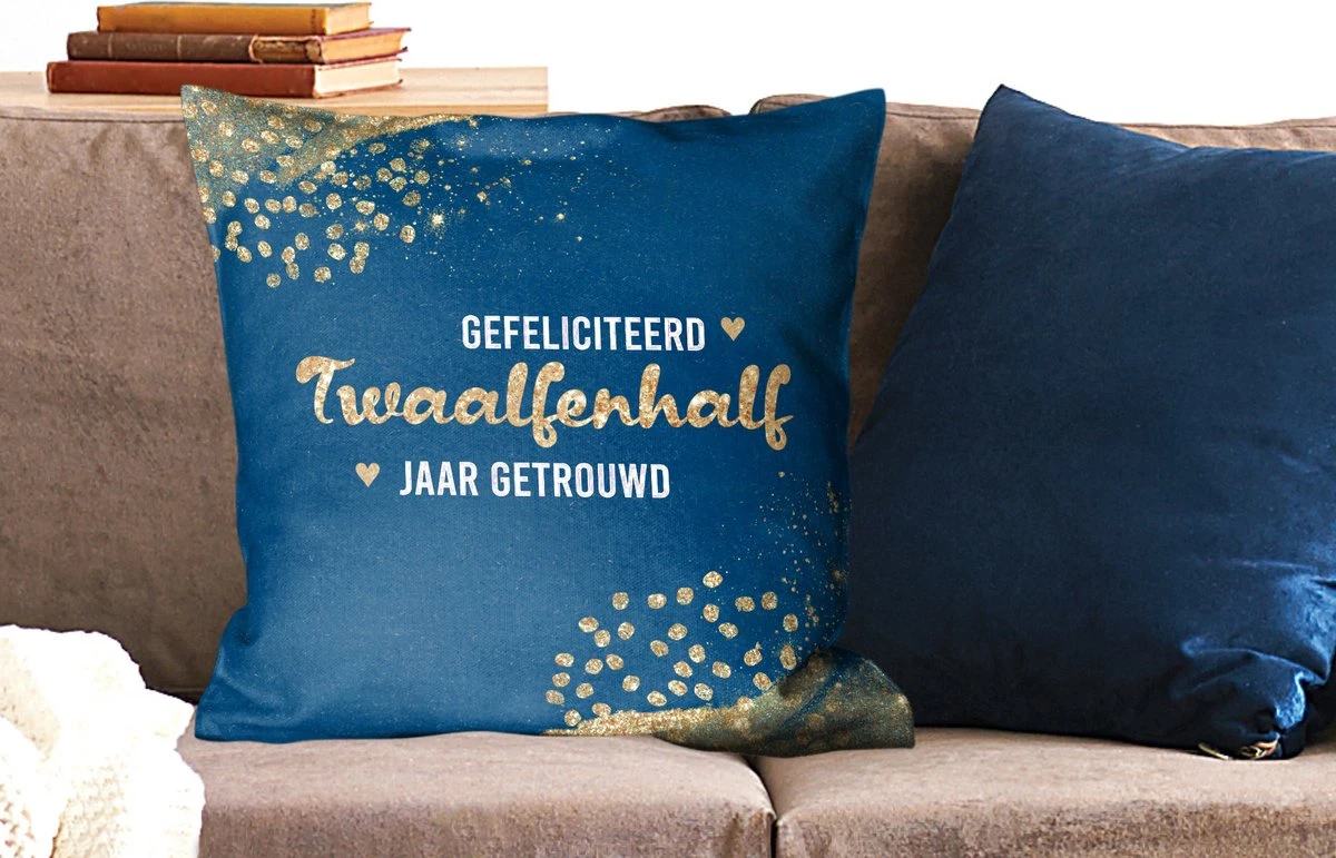 Sierkussen – Gefeliciteerd twaalfenhalf jaar getrouwd – Spreuken – Quotes – Goud – Jubileum – Kussens woonkamer