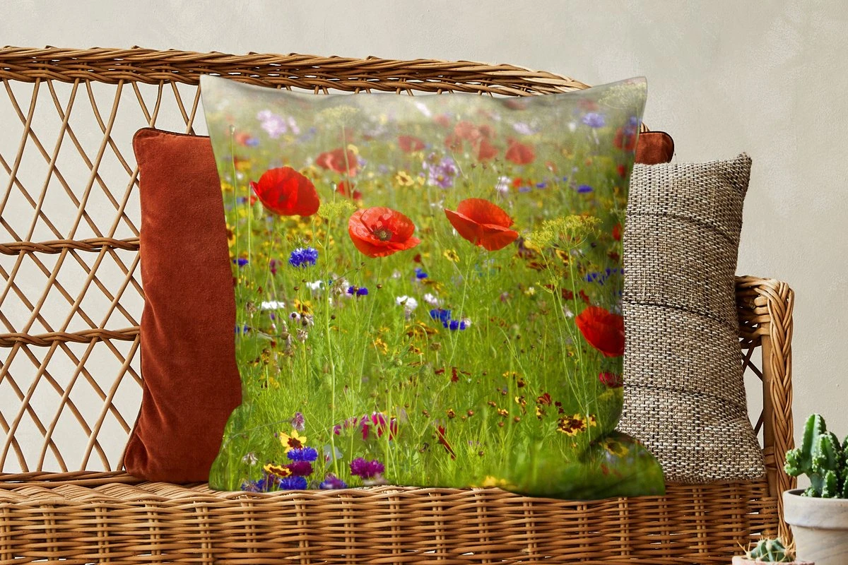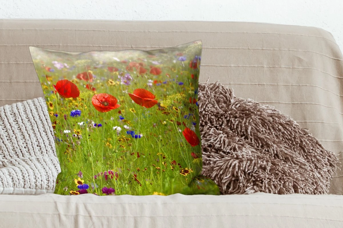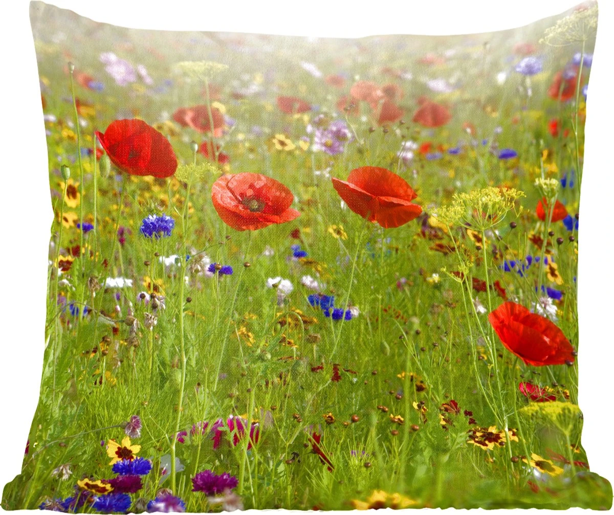 Sierkussen – Lente – Bloemen – Rood – Klaproos – Gras – Groen – Kussens woonkamer